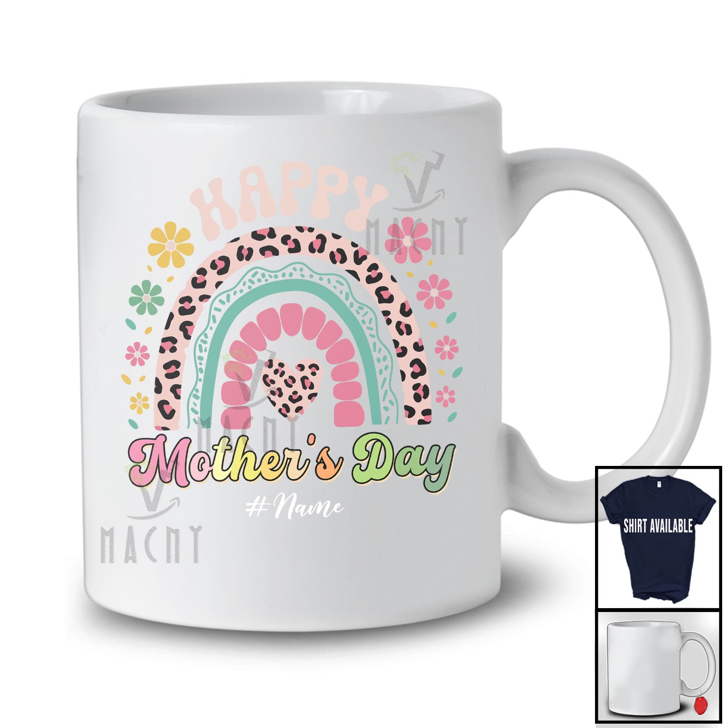 new MacnyStore - Personalized Custom Name Happy Mother's Day; Adorable Flowers Leopard Rainbow; Family T-Shirt – Macnystore