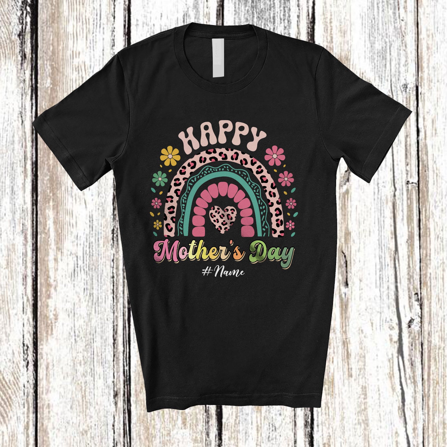 Personalized Custom Name Happy Mother's Day; Adorable Flowers Leopard Rainbow; Family T-Shirt