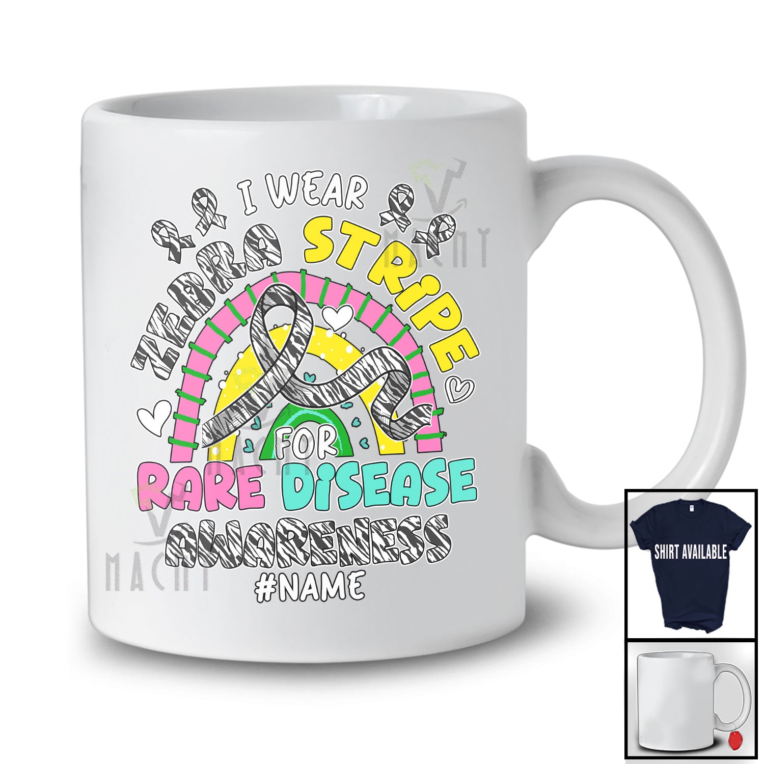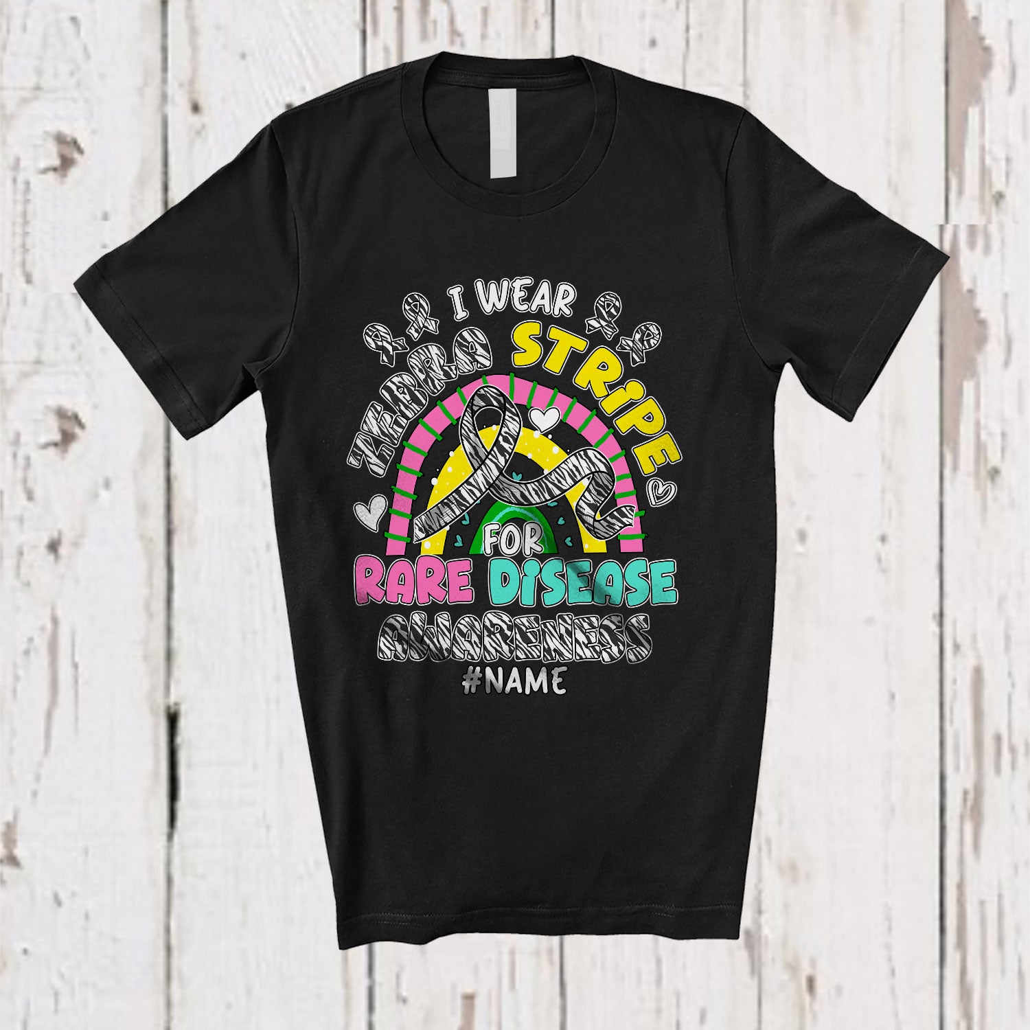 new MacnyStore - Personalized Custom Name I Wear Zebra Stripe; Amazing Rare Disease Awareness Ribbon Rainbow T-Shirt – Macnystore