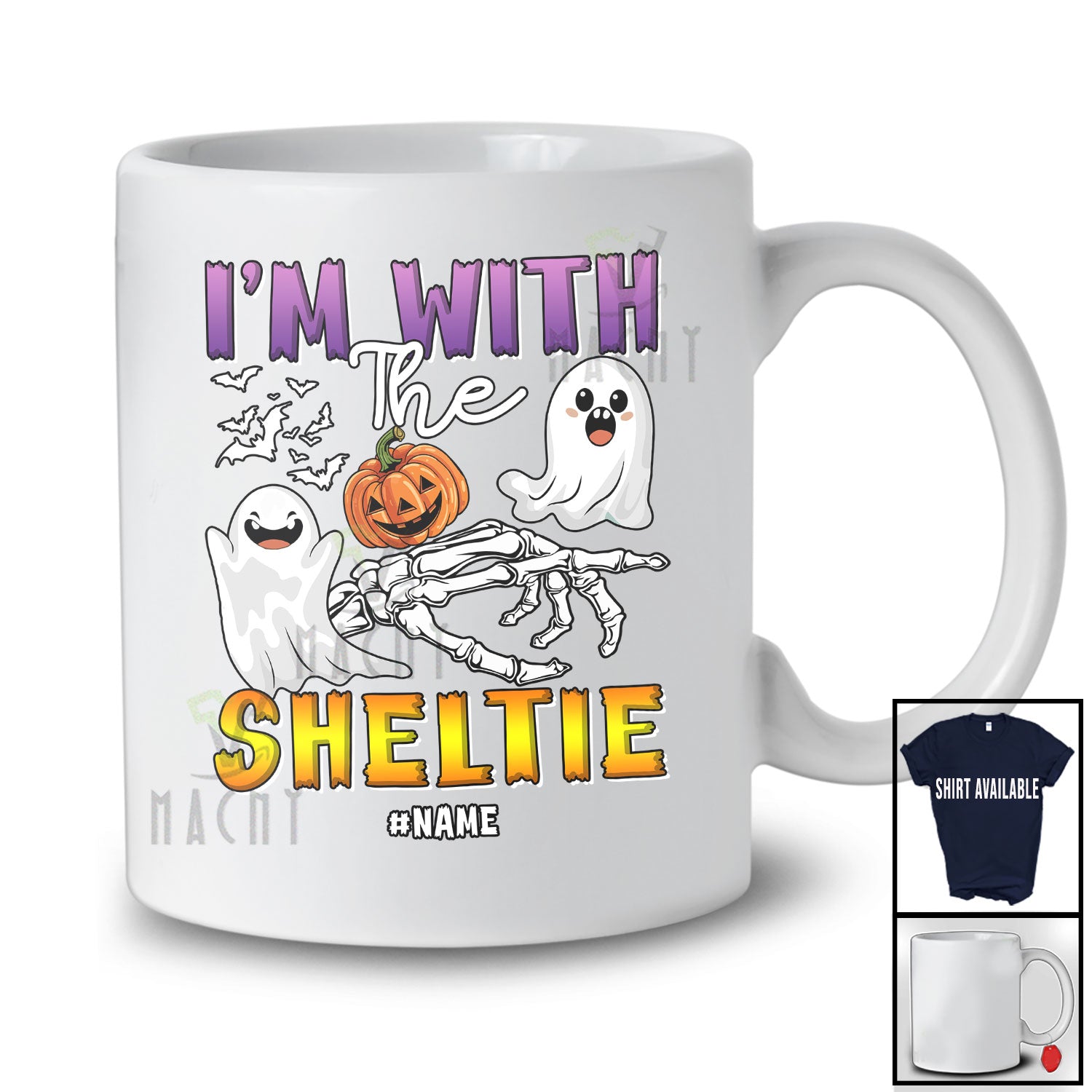• Personalized Custom Name I'm With The Shelties; Lovely Halloween Boo Skeleton Hand T-Shirt. This cotton t-shirt is a durable staple product with a classic fit. One of the most popular items, it has a relaxed style made for everyday and casual wear.
