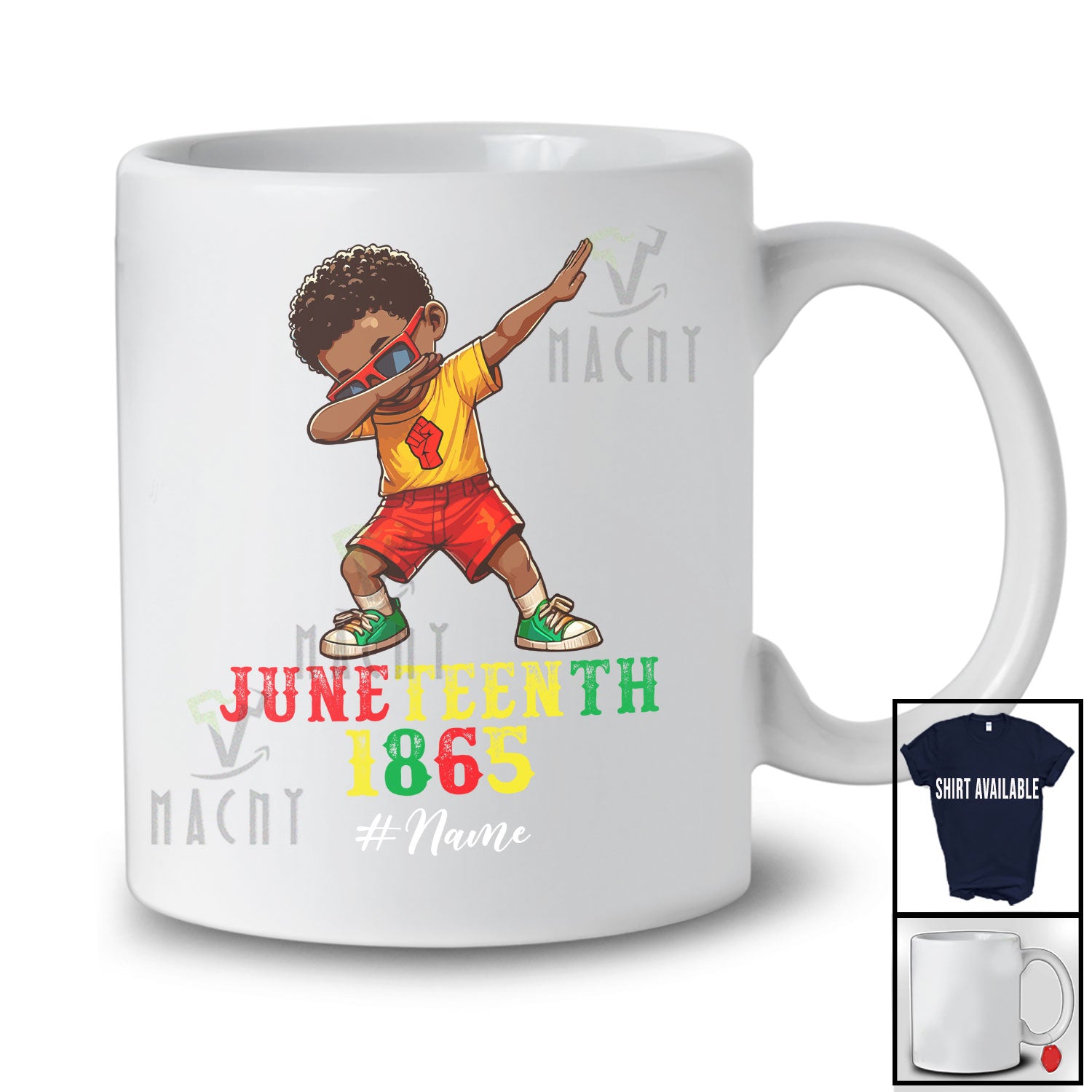 Personalized Custom Name Juneteenth; Cheerful Custom Name Afro Boy Dabbing Melanin African T-Shirt. This cotton t-shirt is a durable staple product with a classic fit. One of the most popular items, it has a relaxed style made for everyday and casual wear.