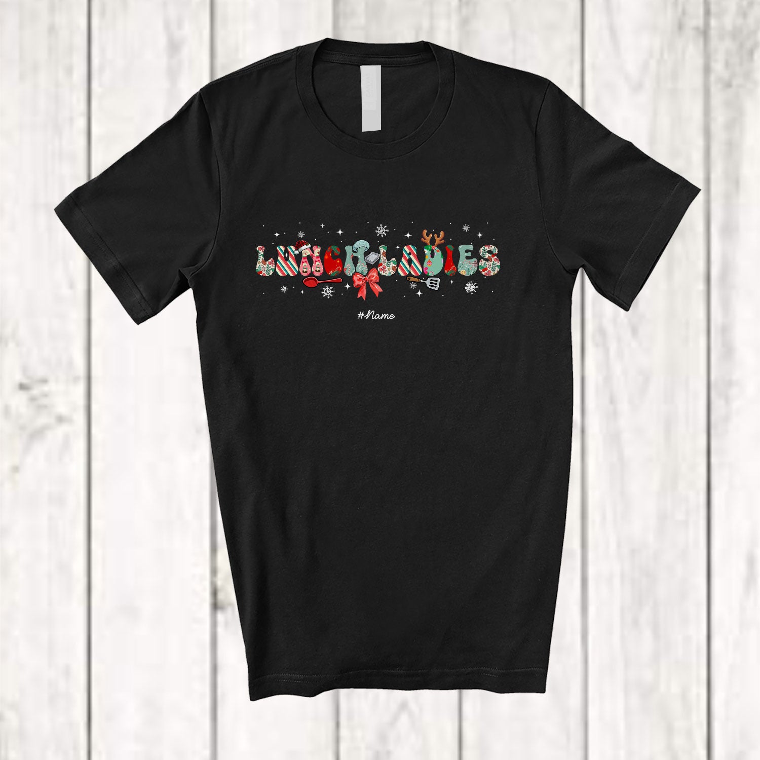 Personalized Custom Name Lunch Ladies; Lovely Christmas Snow Decoration; Jobs Careers T-Shirt
