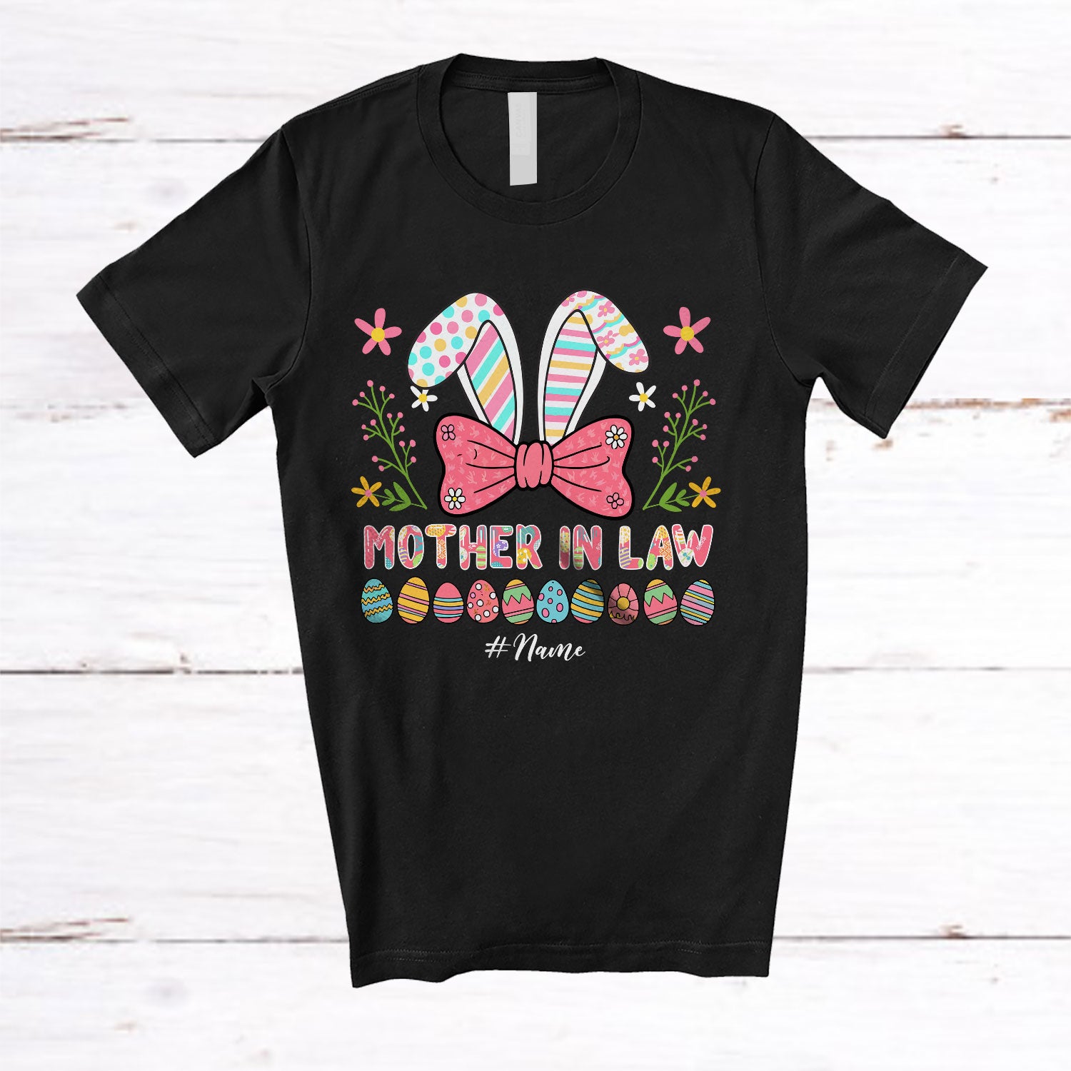 • Personalized Custom Name Mother in law; Amazing Easter Bunny Ear Egg Hunting; Family Group T-Shirt. This cotton t-shirt is a durable staple product with a classic fit. One of the most popular items, it has a relaxed style made for everyday and casual wear.