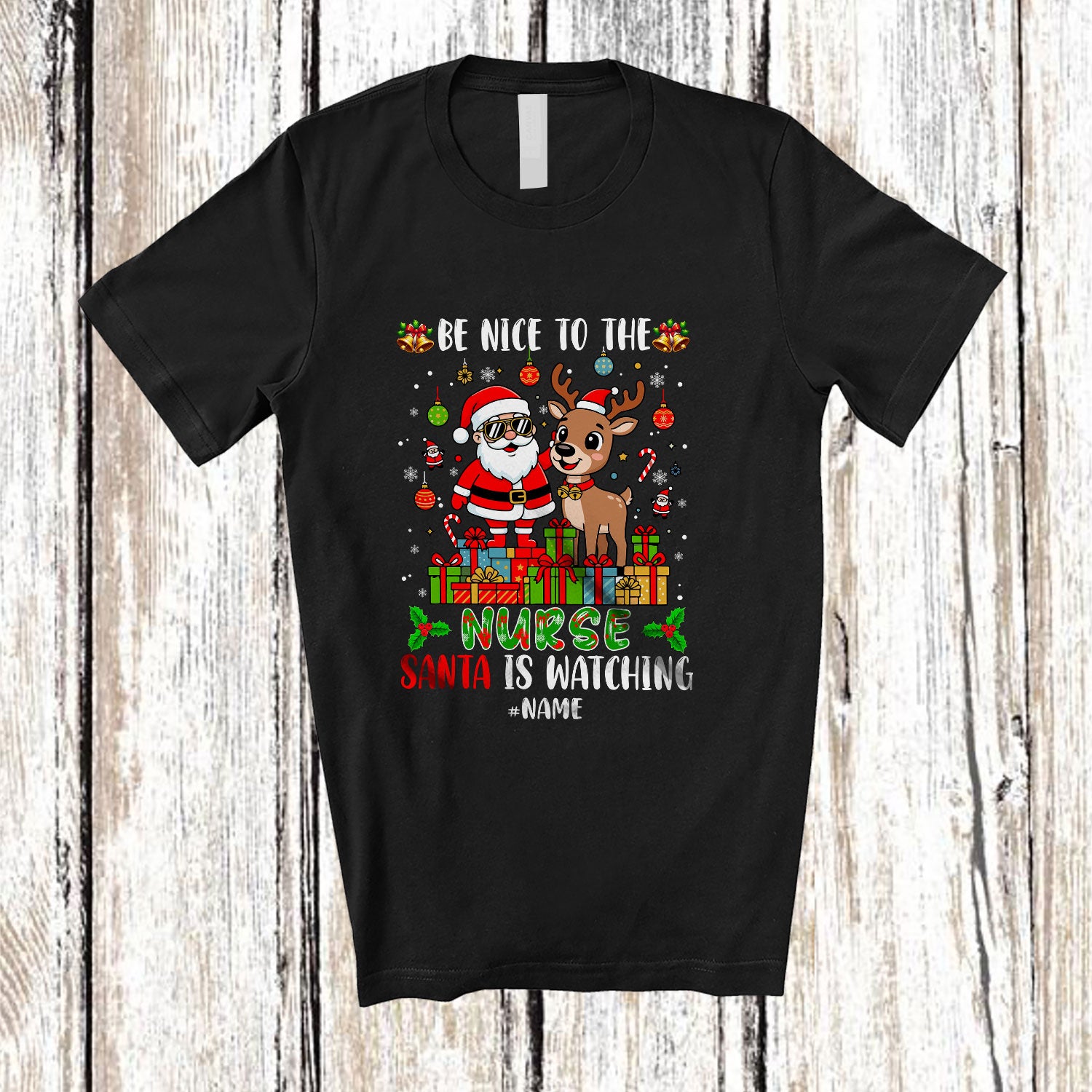 new MacnyStore - Personalized Custom Name Nice To The Nurse; Awesome Christmas Reindeer Santa Snow Family T-Shirt – Macnystore