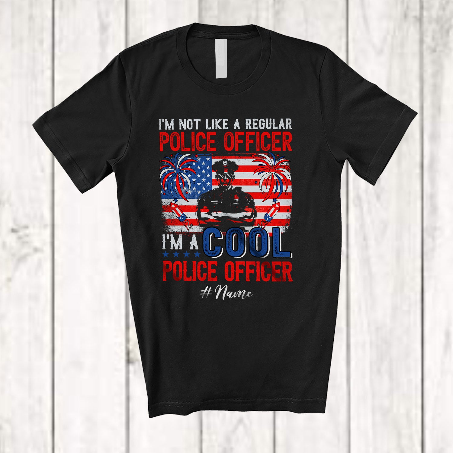 • The Personalized Custom Name Not Like Regular Police Officer; Proud 4th of July Patriotic T-Shirt was built with people like you in mind. Something to keep you happy. Every. Single. Day.