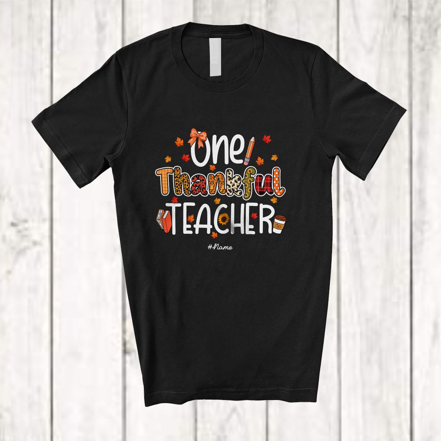 Personalized Custom Name One Thankful Teacher; Awesome Thanksgiving Leopard Plaid Coffee T-Shirt