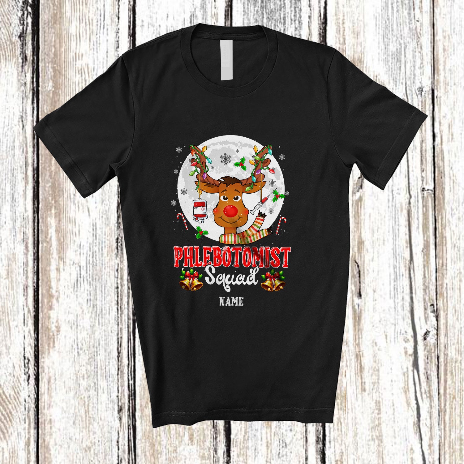 Personalized Custom Name Phlebotomist Squad; Proud Christmas Jobs Moon Reindeer; Family T-Shirt