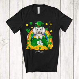 • Personalized Custom Name Poodle Leprechaun In Pot Of Gold; Lovely St. Patrick's Day Rainbow T-Shirt. This cotton t-shirt is a durable staple product with a classic fit. One of the most popular items, it has a relaxed style made for everyday and casual wear.