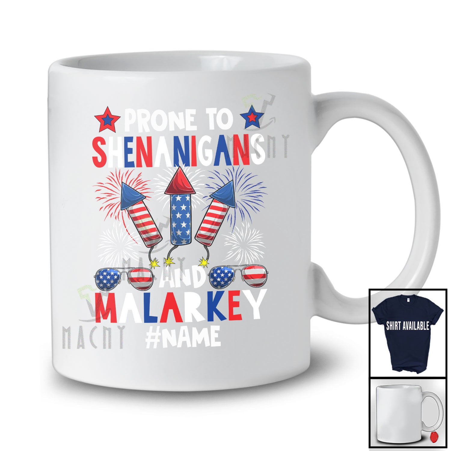 This Personalized Custom Name Prone To Shenanigans; Cheerful 4th Of July Firecracker Fireworks T-Shirt is great idea gift for your family, friends in this birthday, christmas, mother's day, father's day, patrick's day or any holiday.