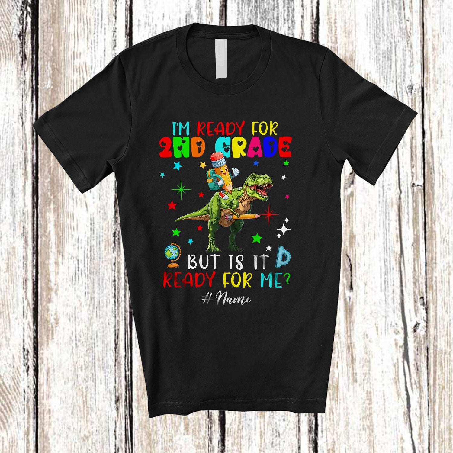 The Personalized Custom Name Ready For 2nd Grade; Amusing First Day Of School Pencil Riding T-Rex T-Shirt is evocative, to say the least, but that's why you're drawn to it in the first place.