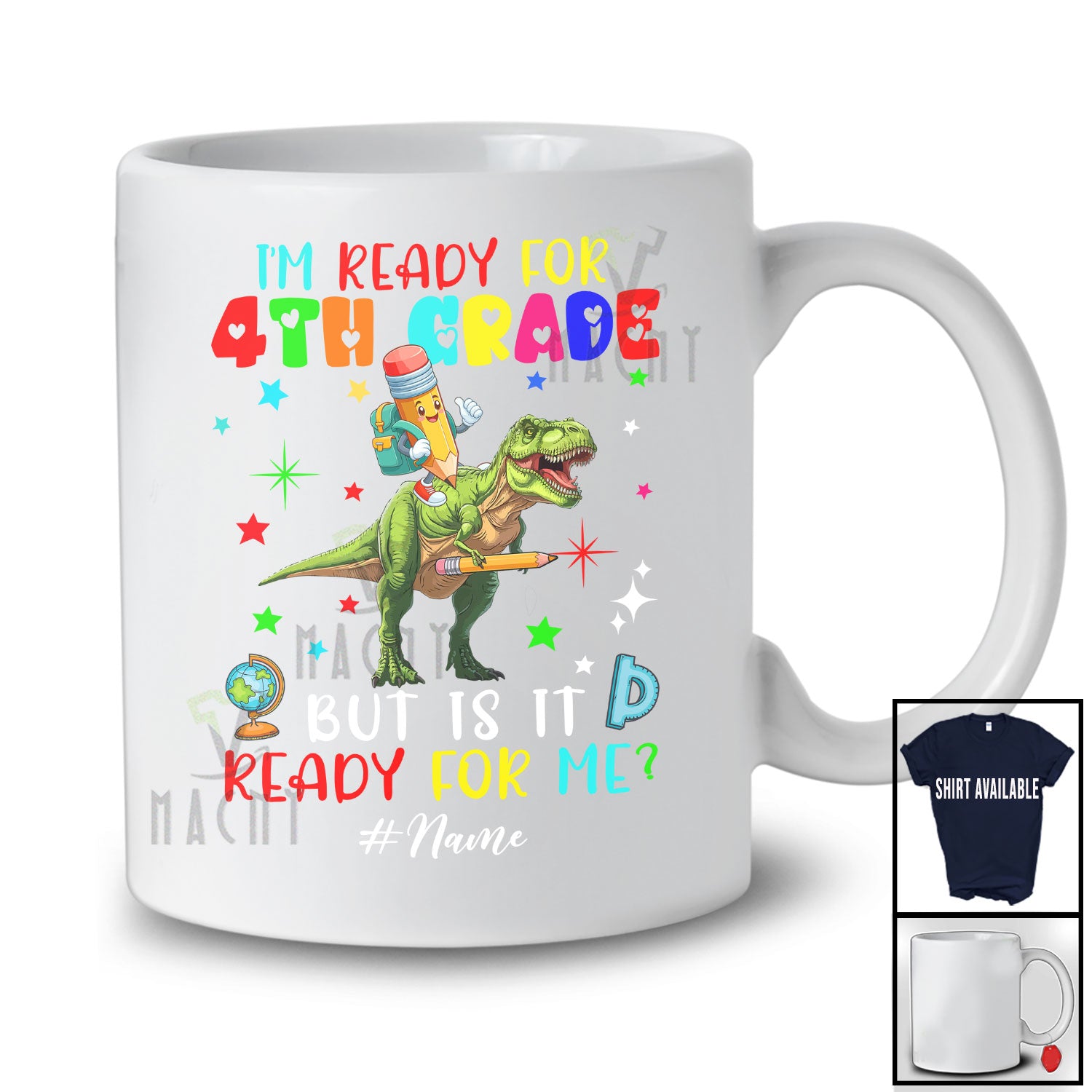 • Personalized Custom Name Ready For 4th Grade; Amusing First Day Of School Pencil Riding T-Rex T-Shirt. This cotton t-shirt is a durable staple product with a classic fit. One of the most popular items, it has a relaxed style made for everyday and casual wear.