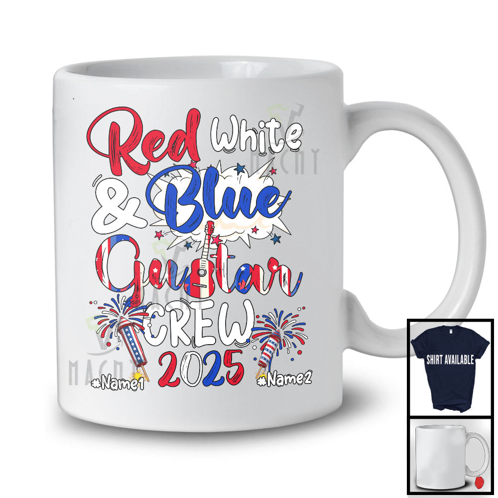 Personalized Custom Name Red White And Guitar Crew 2025, Proud 4th of July Patriotic Group T-Shirt
