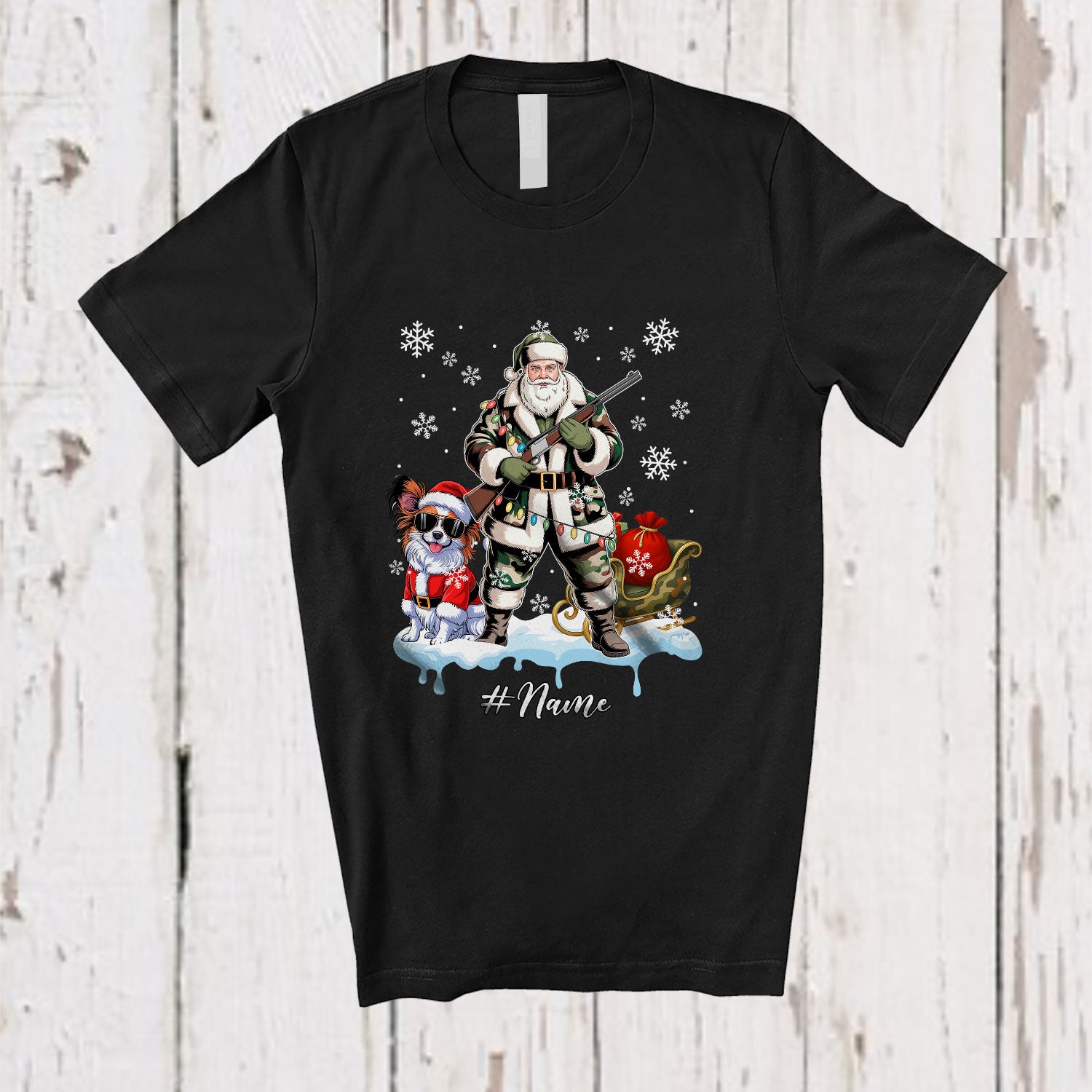 Personalized Custom Name Santa Go Hunting Papillon; Awesome Christmas Lights Hunter T-Shirt