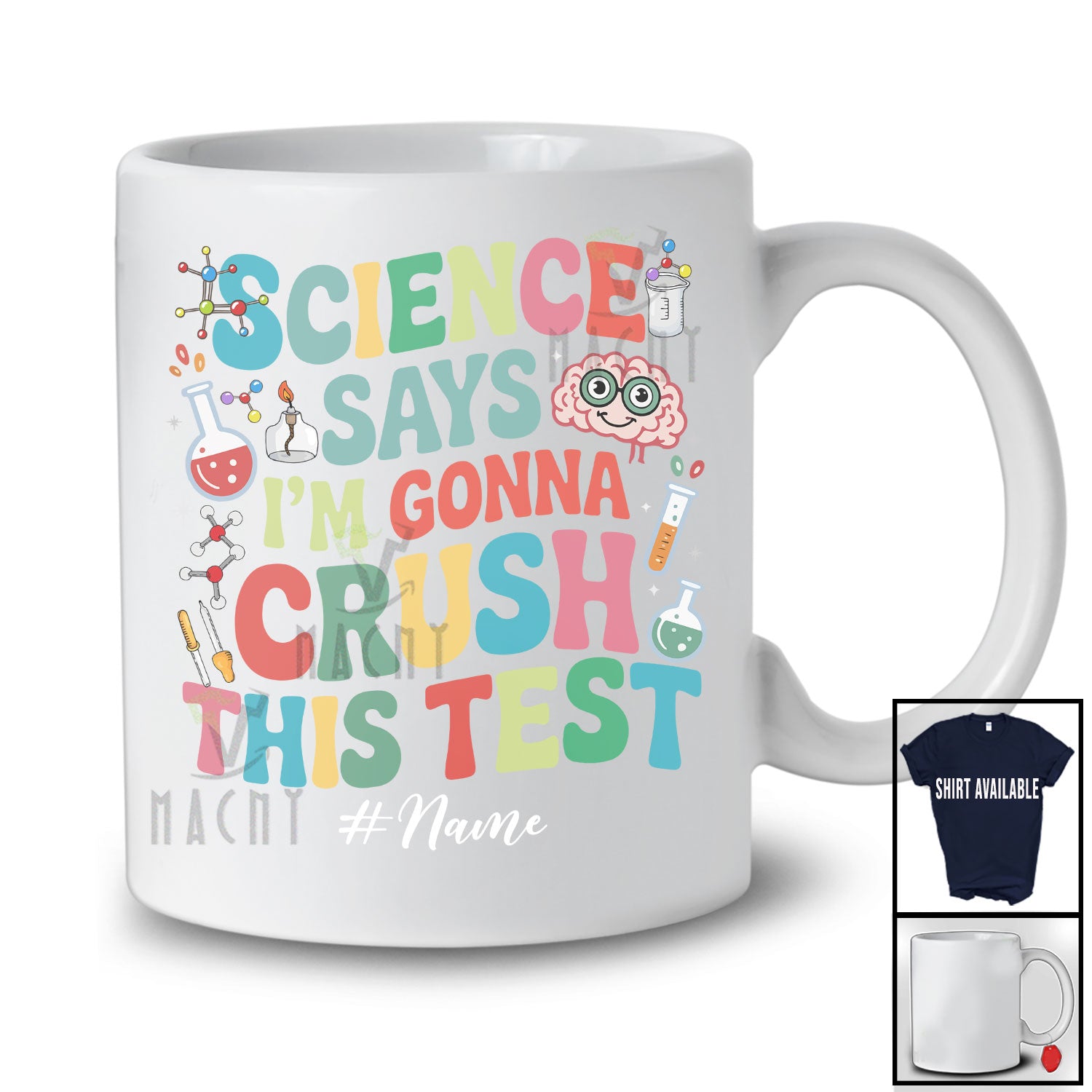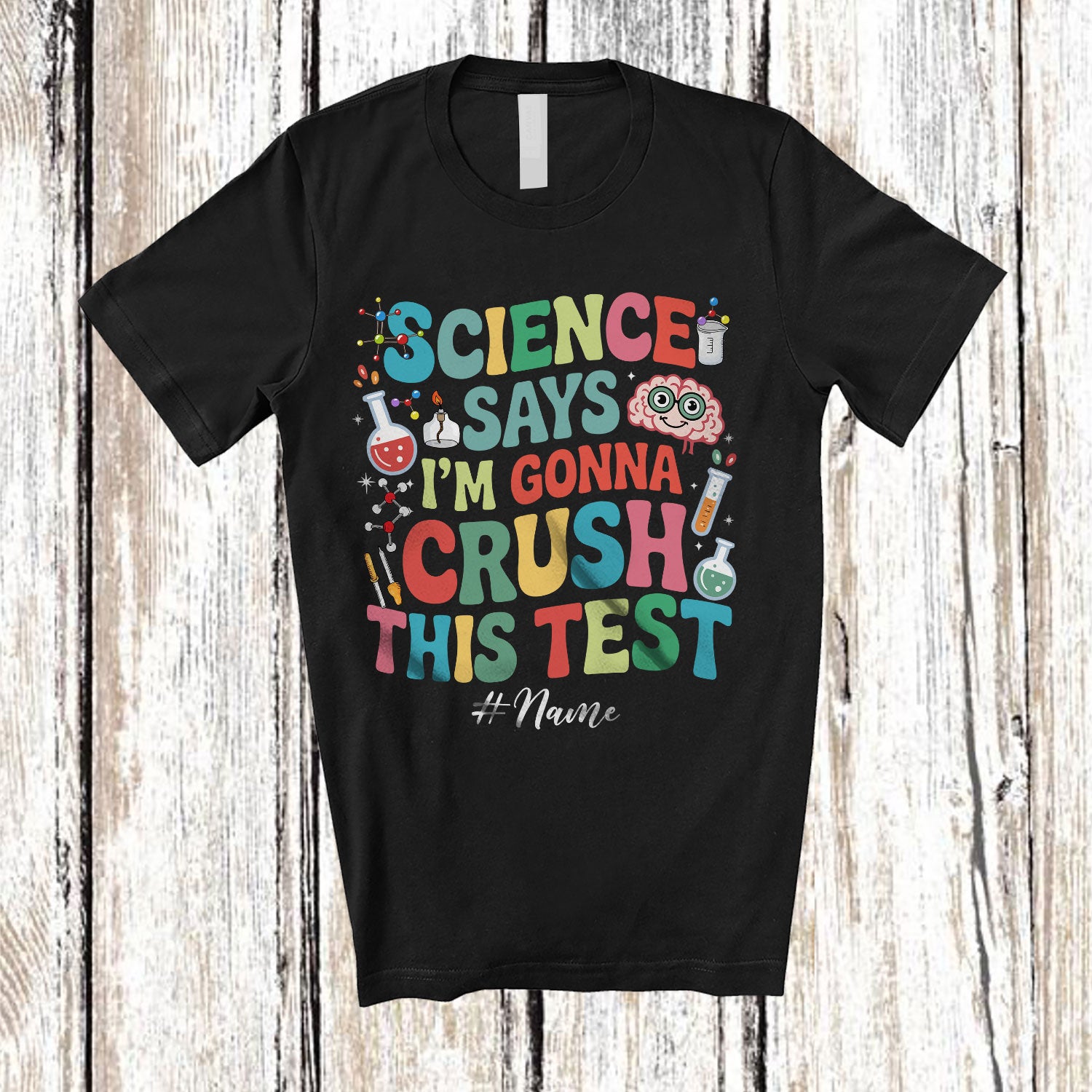 new MacnyStore - Personalized Custom Name Science Says Crush This Test; Humorous Groovy Student Teacher T-Shirt – Macnystore