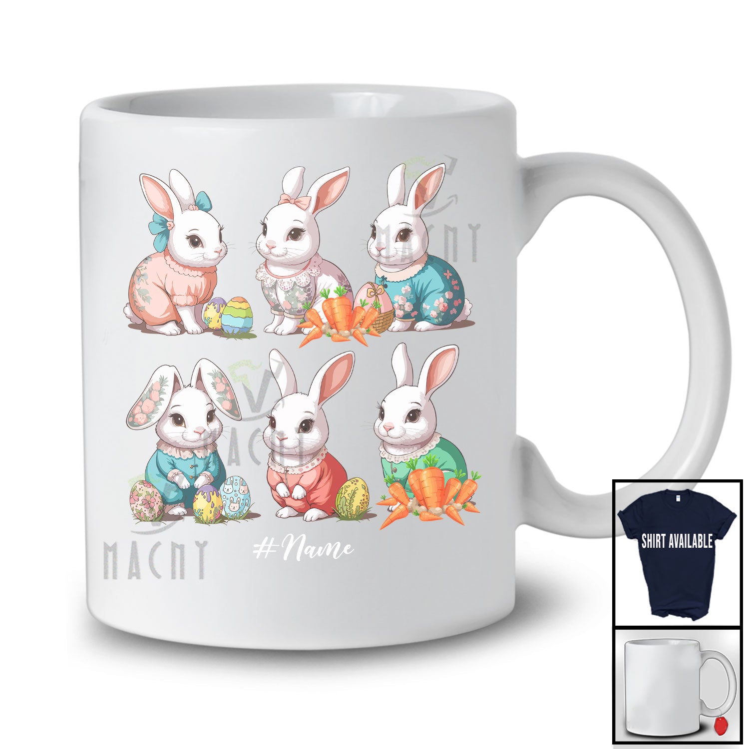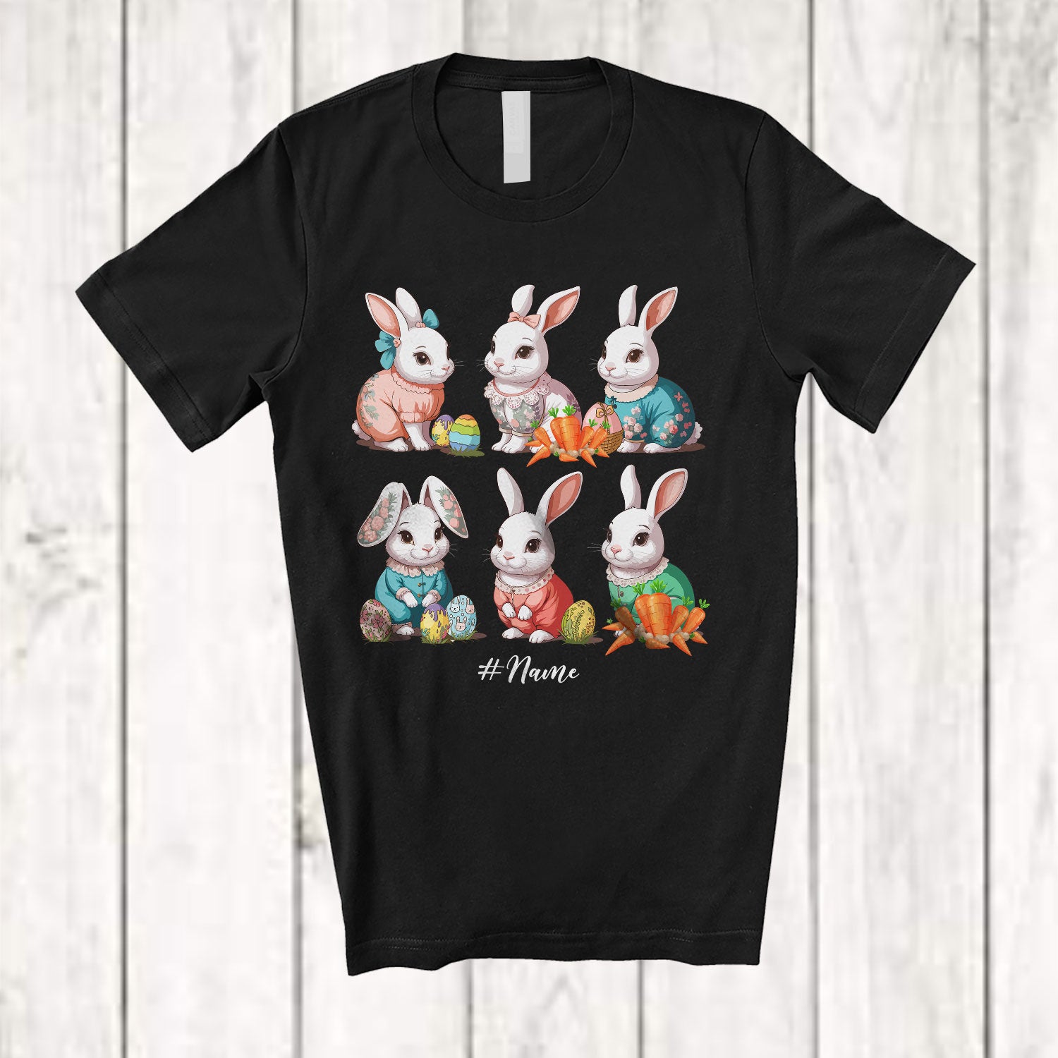 Personalized Custom Name Six Easter Bunnies; Fantastic Easter Bunny Hunting Eggs Carrots T-Shirt. This cotton t-shirt is a durable staple product with a classic fit. One of the most popular items, it has a relaxed style made for everyday and casual wear.