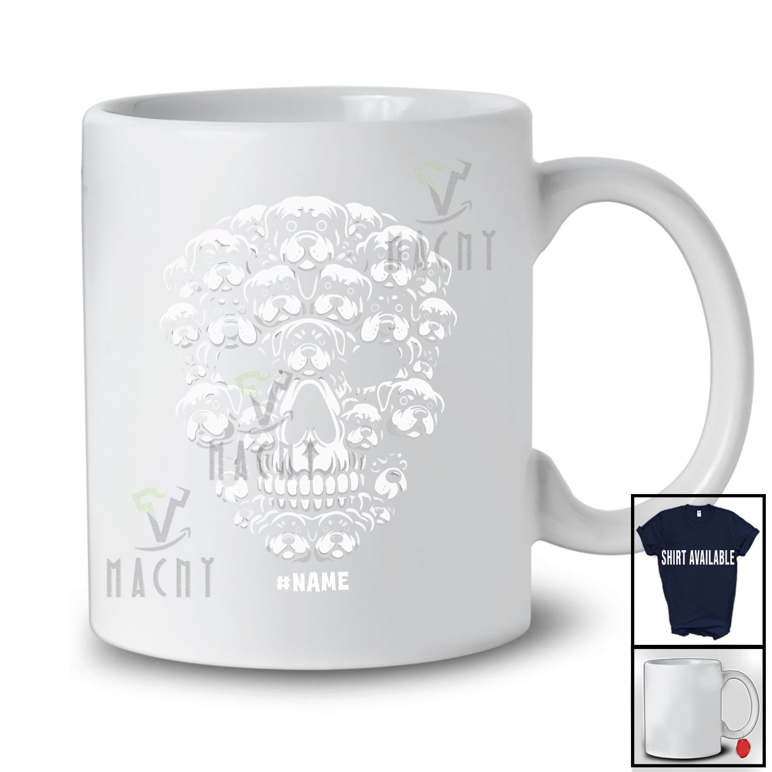 Personalized Custom Name Skull Shape Rottweiler Owner; Creepy Halloween Family T-Shirt. This cotton t-shirt is a durable staple product with a classic fit. One of the most popular items, it has a relaxed style made for everyday and casual wear.