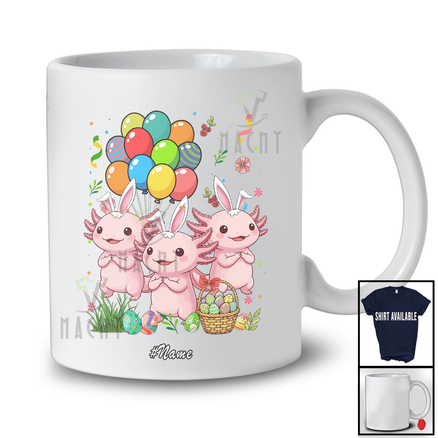 new MacnyStore - Personalized Custom Name Three Bunny Axolotls; Adorable Easter Day Axolotls Hunting Eggs Lover T-Shirt – Macnystore