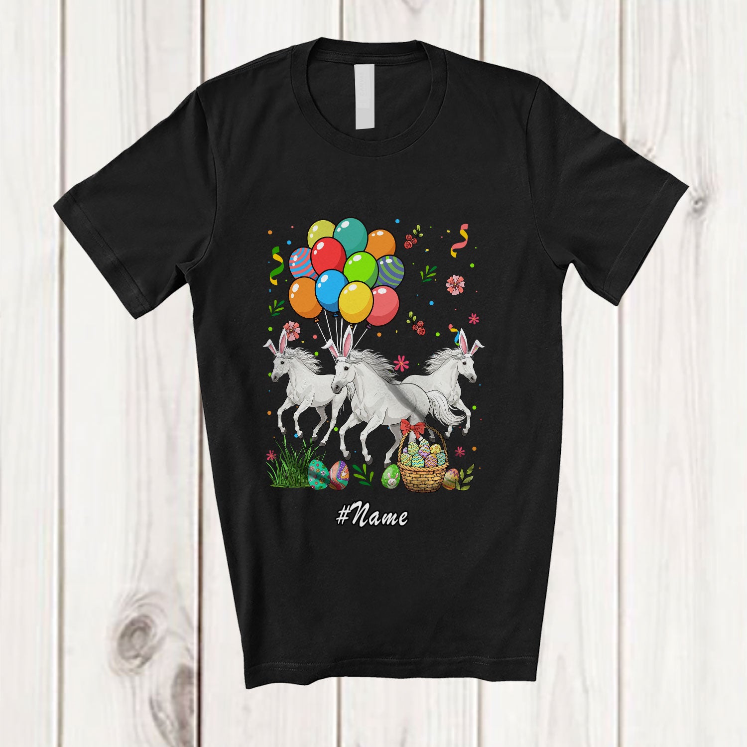 Personalized Custom Name Three Bunny Horses; Adorable Easter Day Horses Hunting Eggs Farmer T-Shirt
