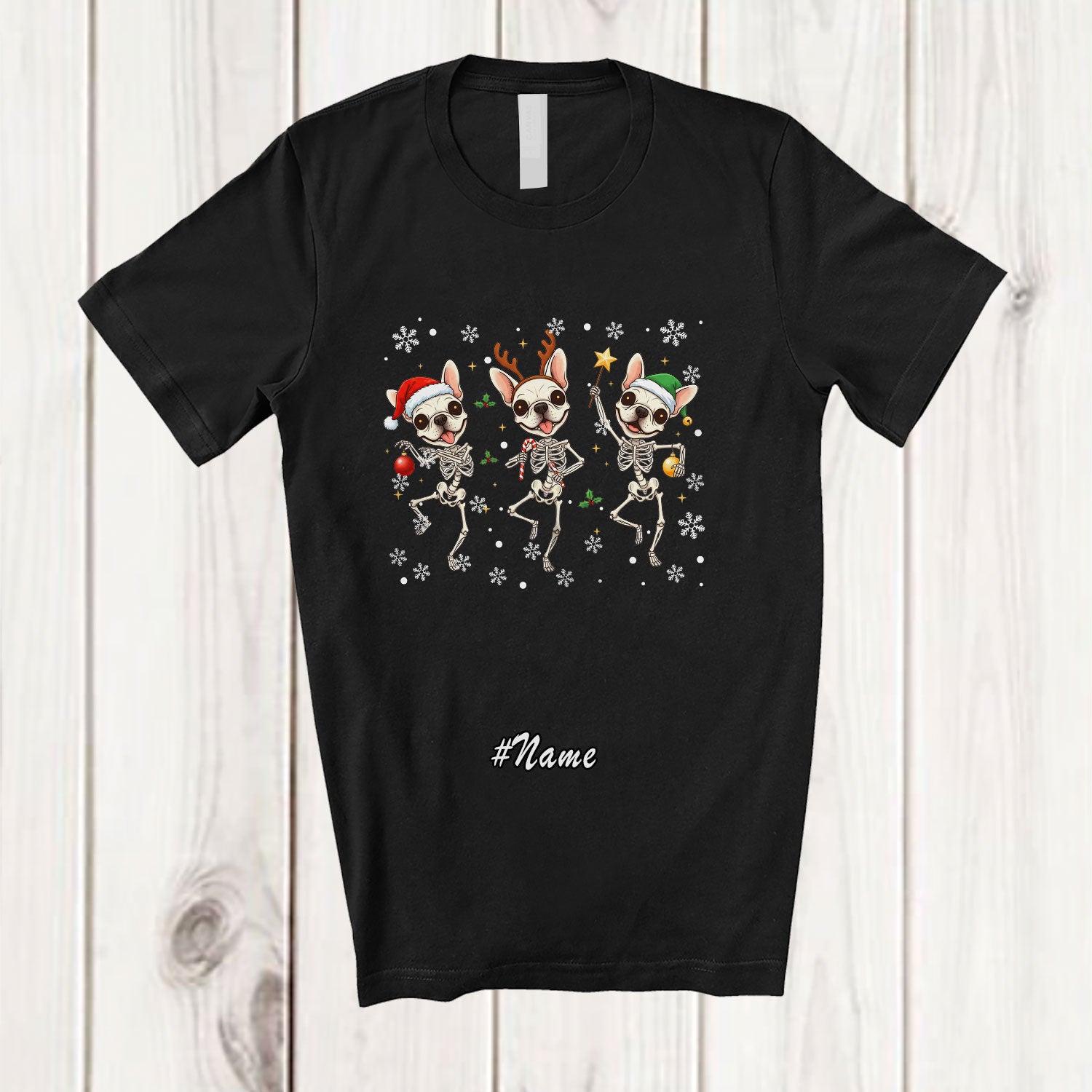 Personalized Custom Name Three Dancing Skeleton French Bulldog; Amazing Christmas Family T-Shirt