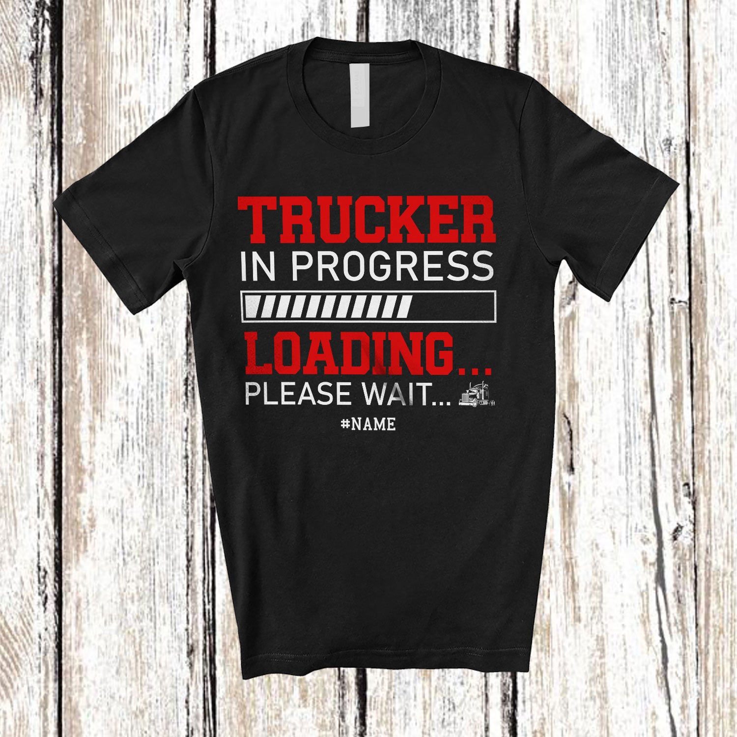 • Personalized Custom Name Trucker In Progress Loading; Amusing Future Jobs Careers Proud T-Shirt. This cotton t-shirt is a durable staple product with a classic fit. One of the most popular items, it has a relaxed style made for everyday and casual wear.
