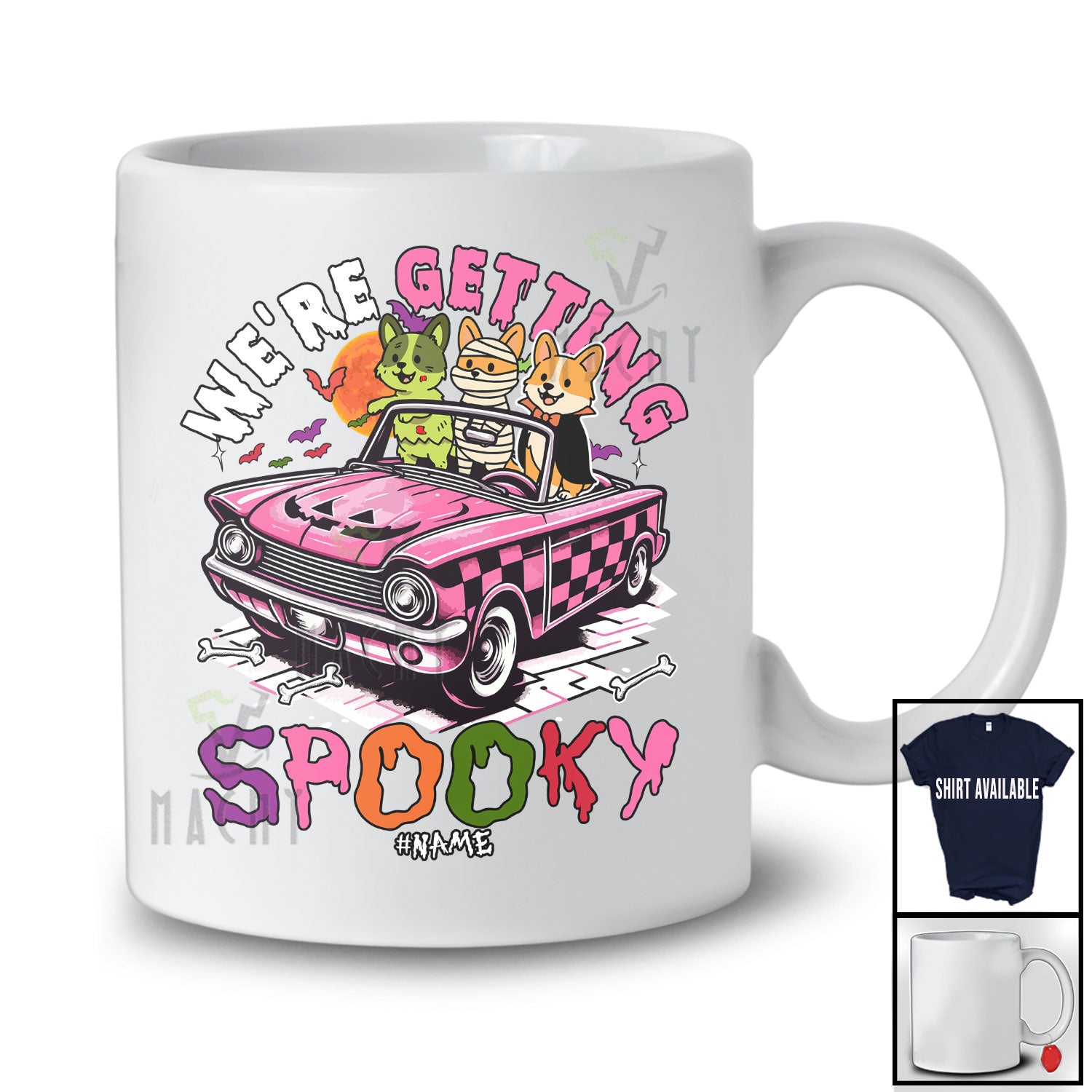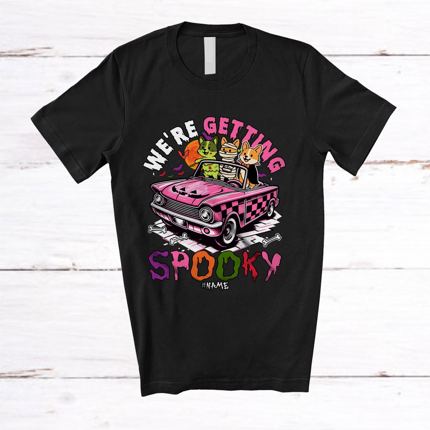 This Personalized Custom Name We're Getting Spooky; Scary Halloween Zombie Mummy Corgi On Car T-Shirt is great idea gift for your family, friends in this birthday, christmas, mother's day, father's day, patrick's day or any holiday.