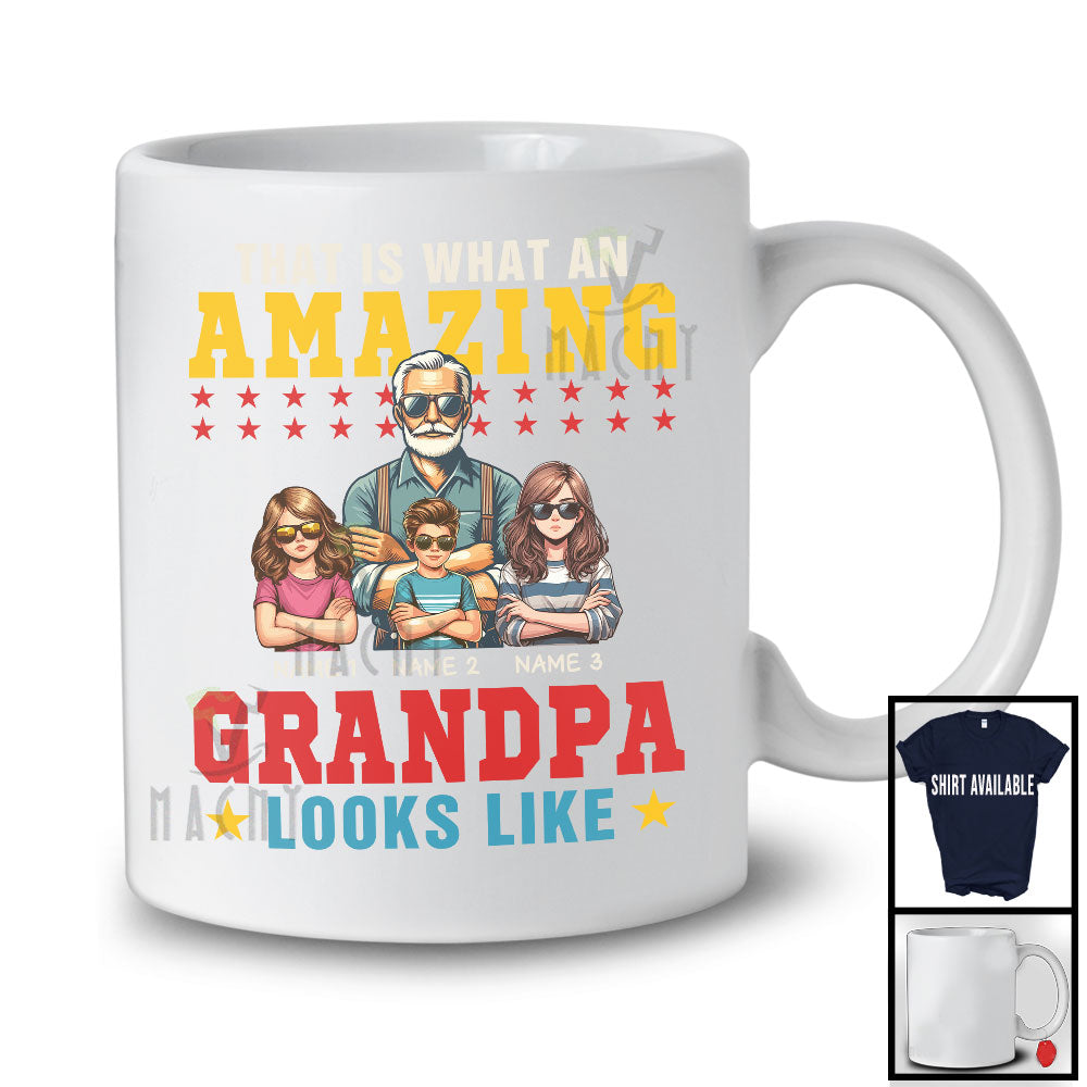 Personalized Custom Name What An Amazing Grandpa Looks Like, Cool Father's Day 1 Boy 2 Girls Family T-Shirt