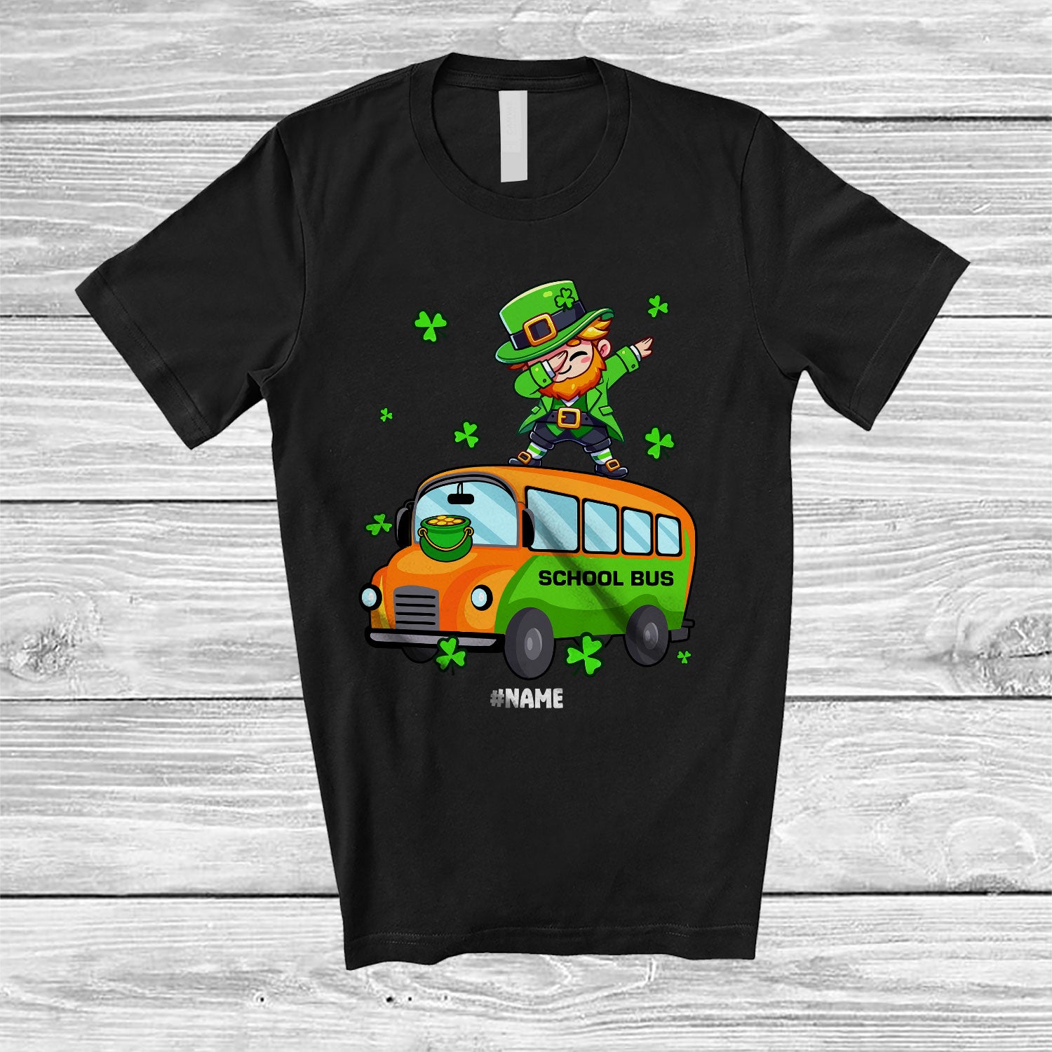 Personalized Dabbing Leprechaun On School Bus; Happy St. Patrick's Day Custom Name Boy Driver T-Shirt