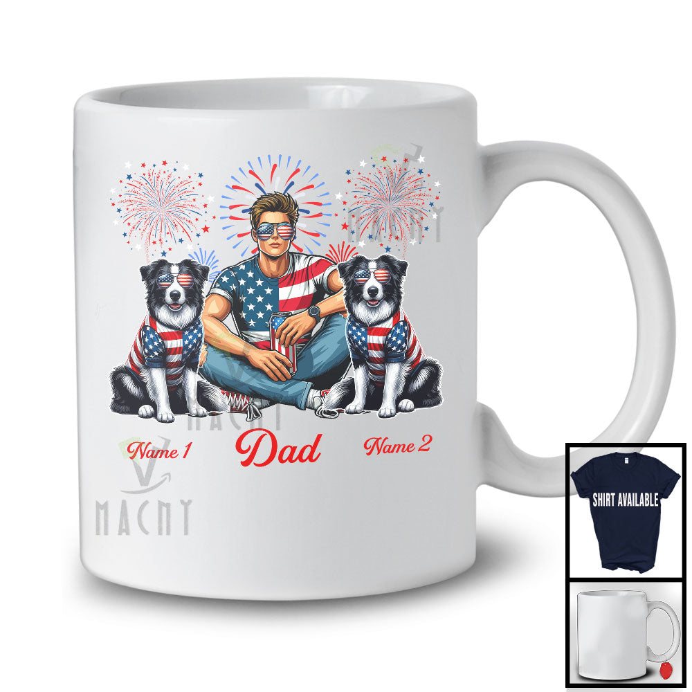 Personalized Dad With Two Custom Name Border Collie, Amazing 4th Of July Fireworks Patriotic T-Shirt