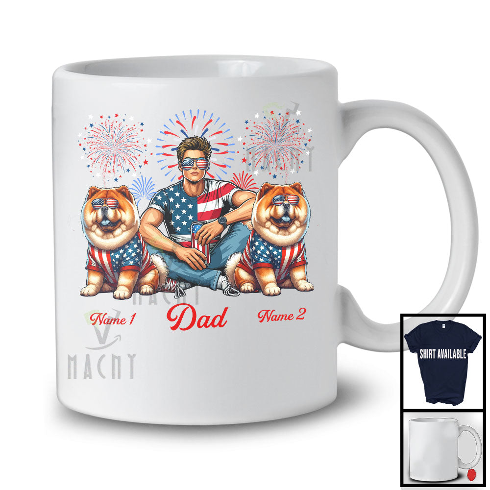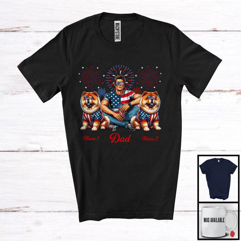 Personalized Dad With Two Custom Name Chow Chow, Amazing 4th Of July Fireworks Patriotic T-Shirt