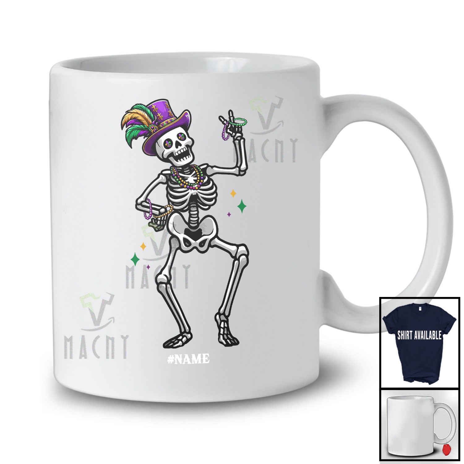 new MacnyStore - Personalized Dancing Skeleton; Humorous Mardi Gras Skeleton Wearing Jester Hat Beads; Family T-Shirt – Macnystore