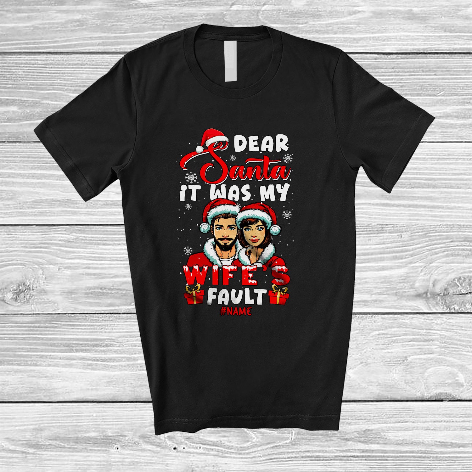 Personalized Dear Santa It Was My Wife's Fault; Fantastic Christmas Santa Custom Name Couple T-Shirt