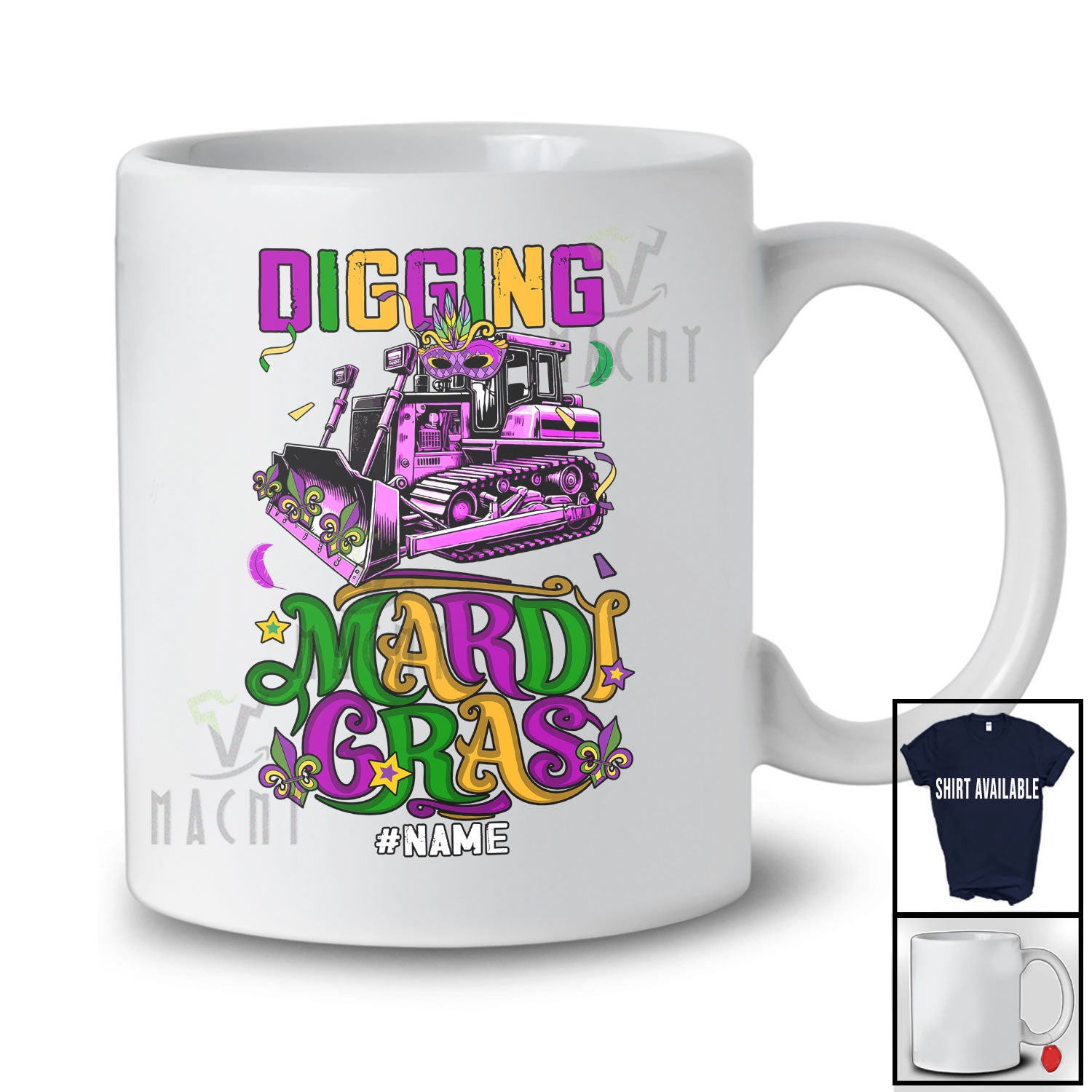 • Personalized Digging Mardi Gras Bulldozer; Amazing Mardi Gras Custom Name Boy Driver; Parades T-Shirt. This cotton t-shirt is a durable staple product with a classic fit. One of the most popular items, it has a relaxed style made for everyday and casual wear.