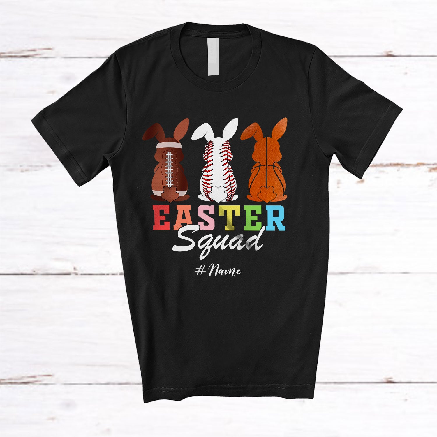 Personalized Easter Squad; Amazing Custom Name 3 Bunnies Basketball Baseball Football Player T-Shirt