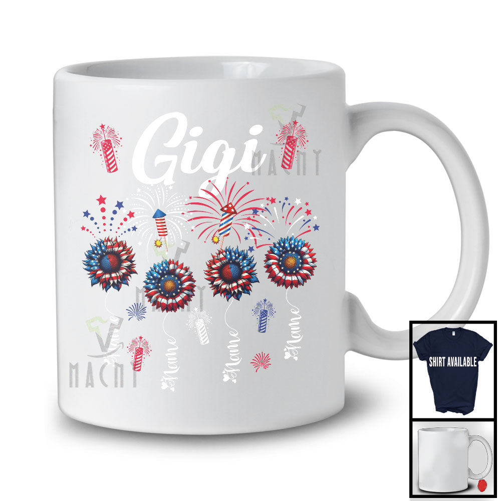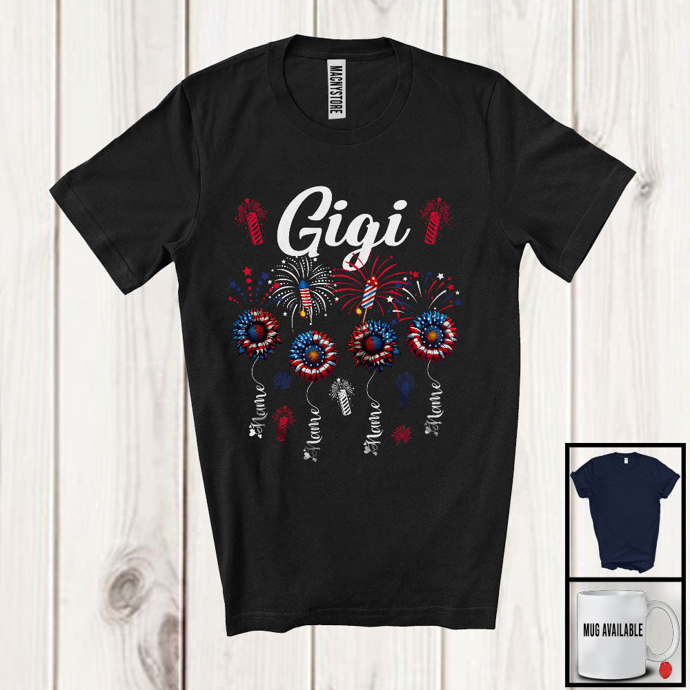 Personalized Gigi, Amazing 4th Of July Sunflowers, Fireworks Custom Name Family Patriotic T-Shirt