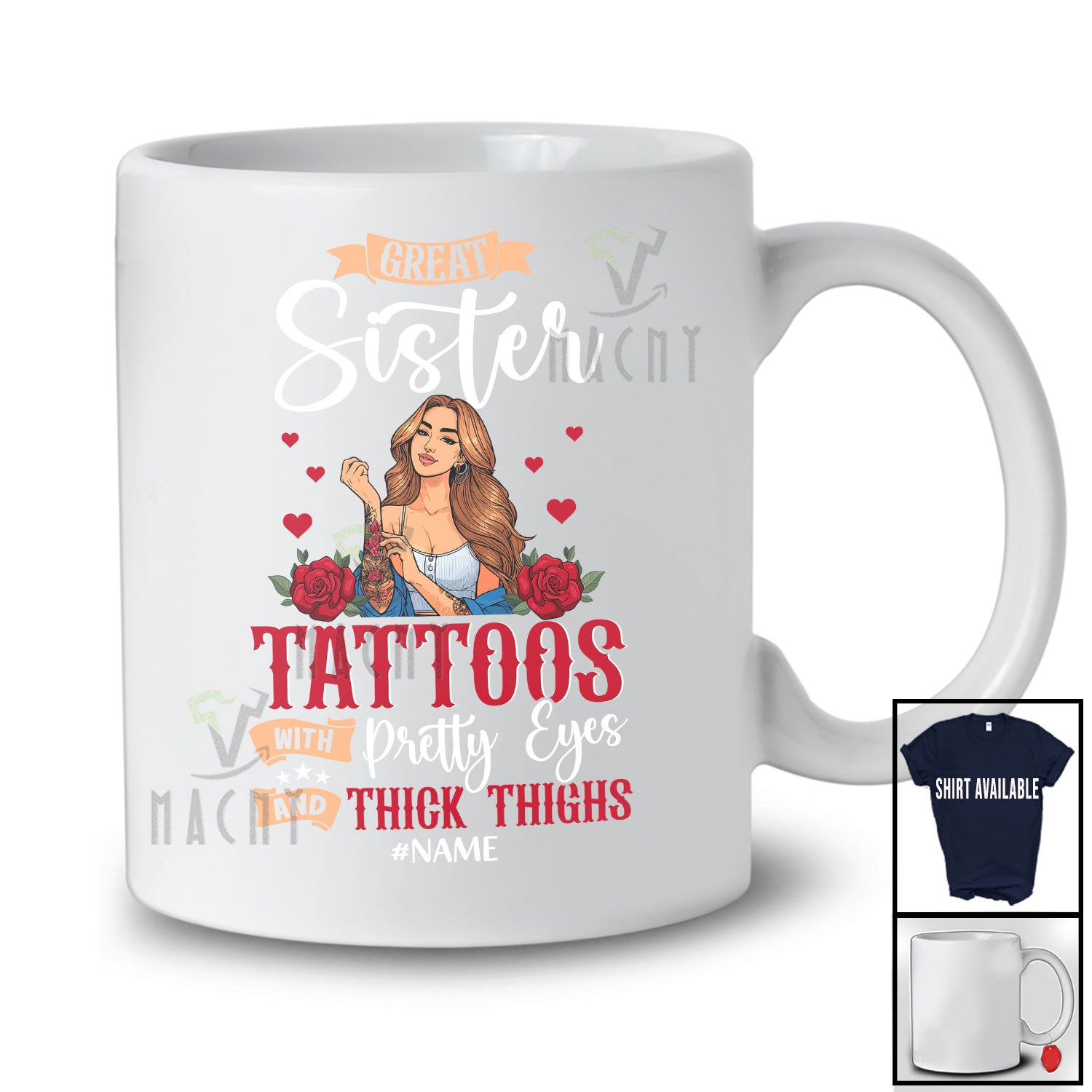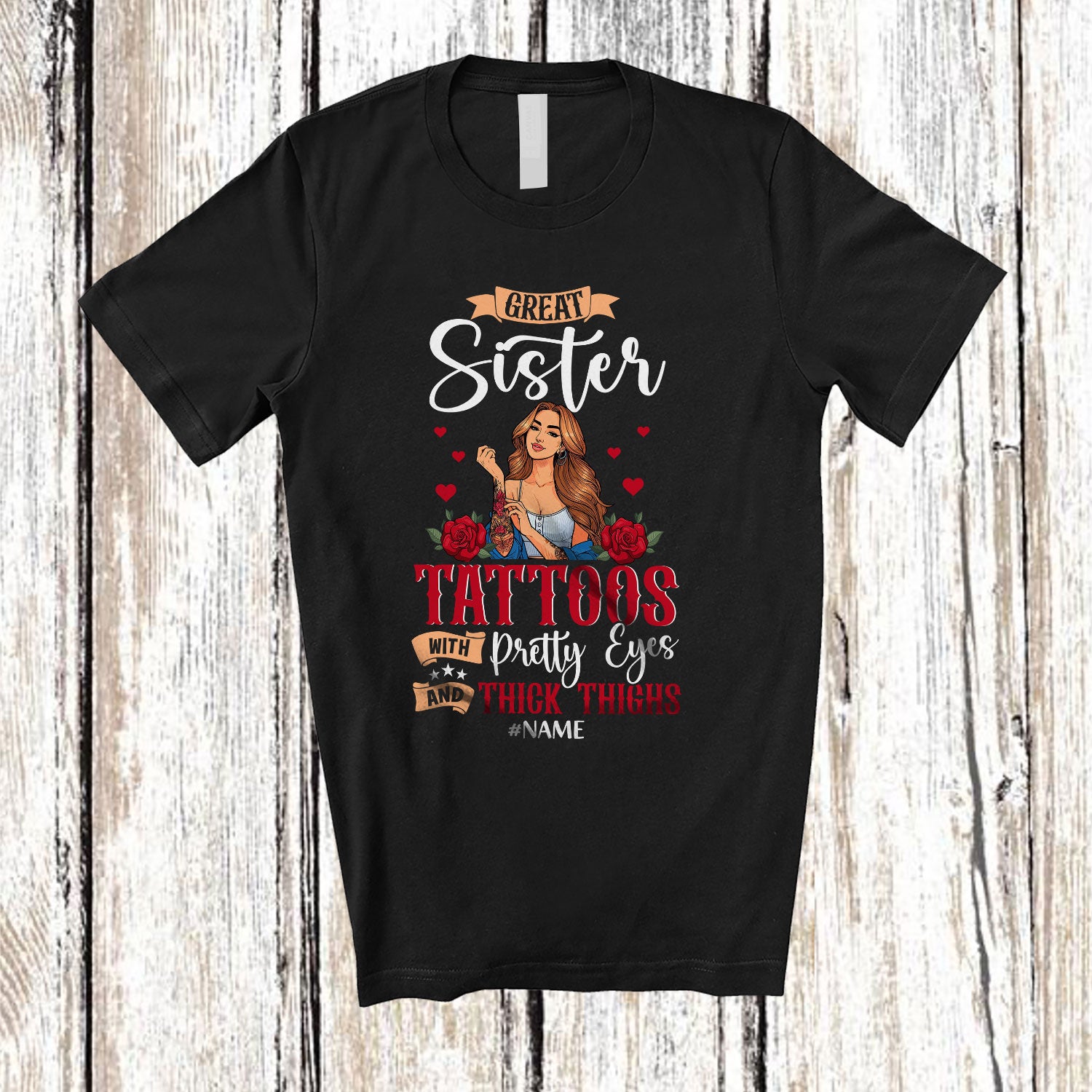 The Personalized Great Sister With Tattoos Pretty Eyes; Amusing Mother's Day Custom Name Family T-Shirt was built with people like you in mind. Something to keep you happy. Every. Single. Day.