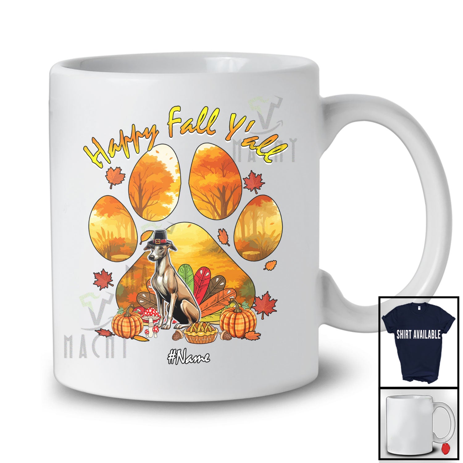 Personalized Happy Fall Y'all; Lovely Thanksgiving Custom Name Turkey Whippet Paws; Fall Leaf T-Shirt