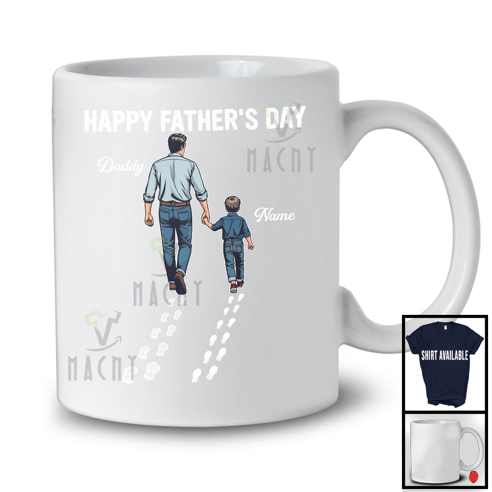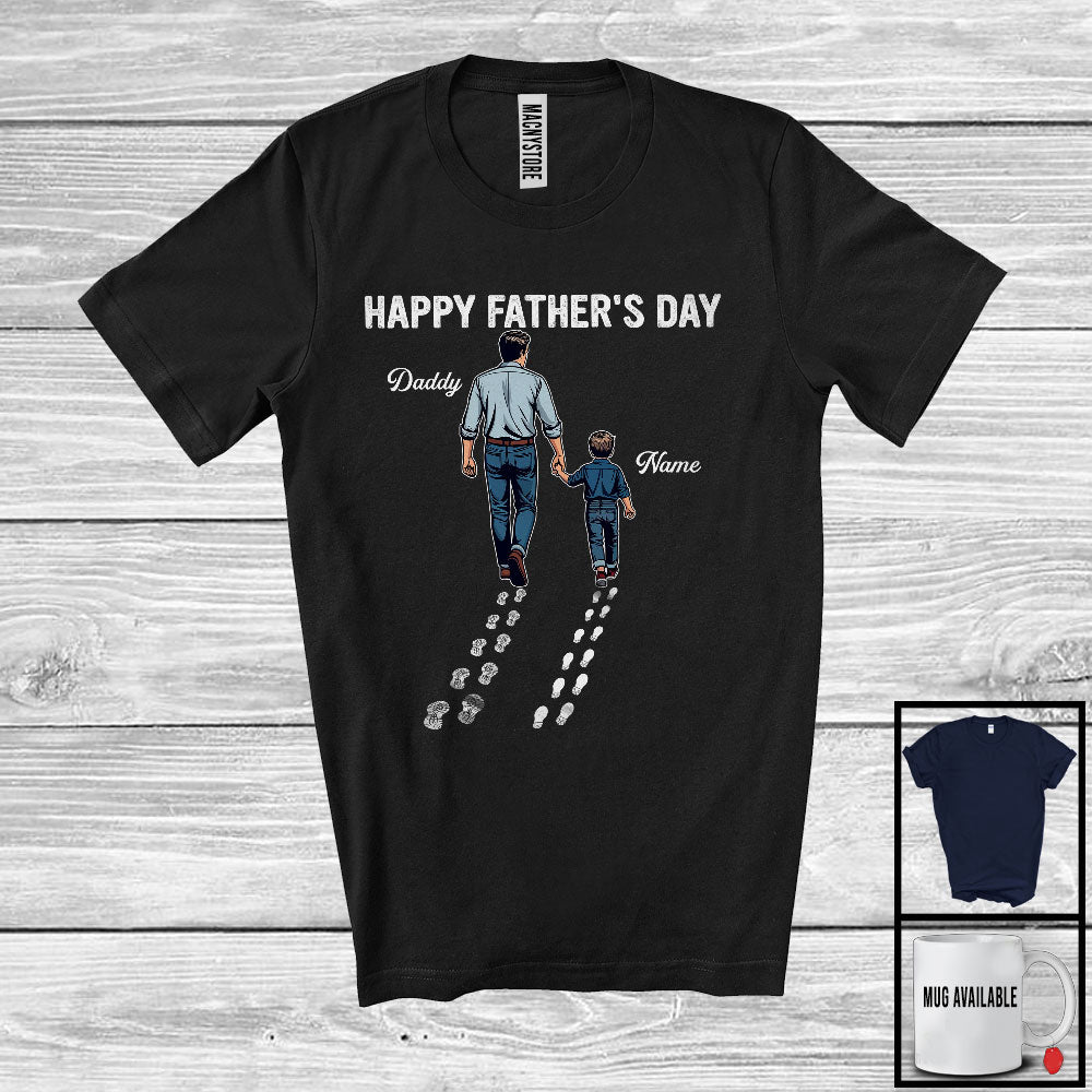 Personalized Happy Father's Day, Lovely Custom Name Dad Son, Footprint Follow Family T-Shirt