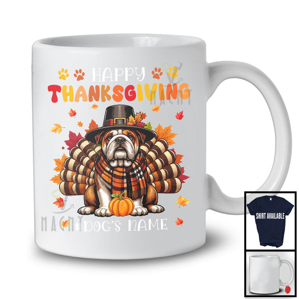 Personalized Happy Thanksgiving; Amazing Custom Name Turkey Bulldog; Fall Leaves T-Shirt