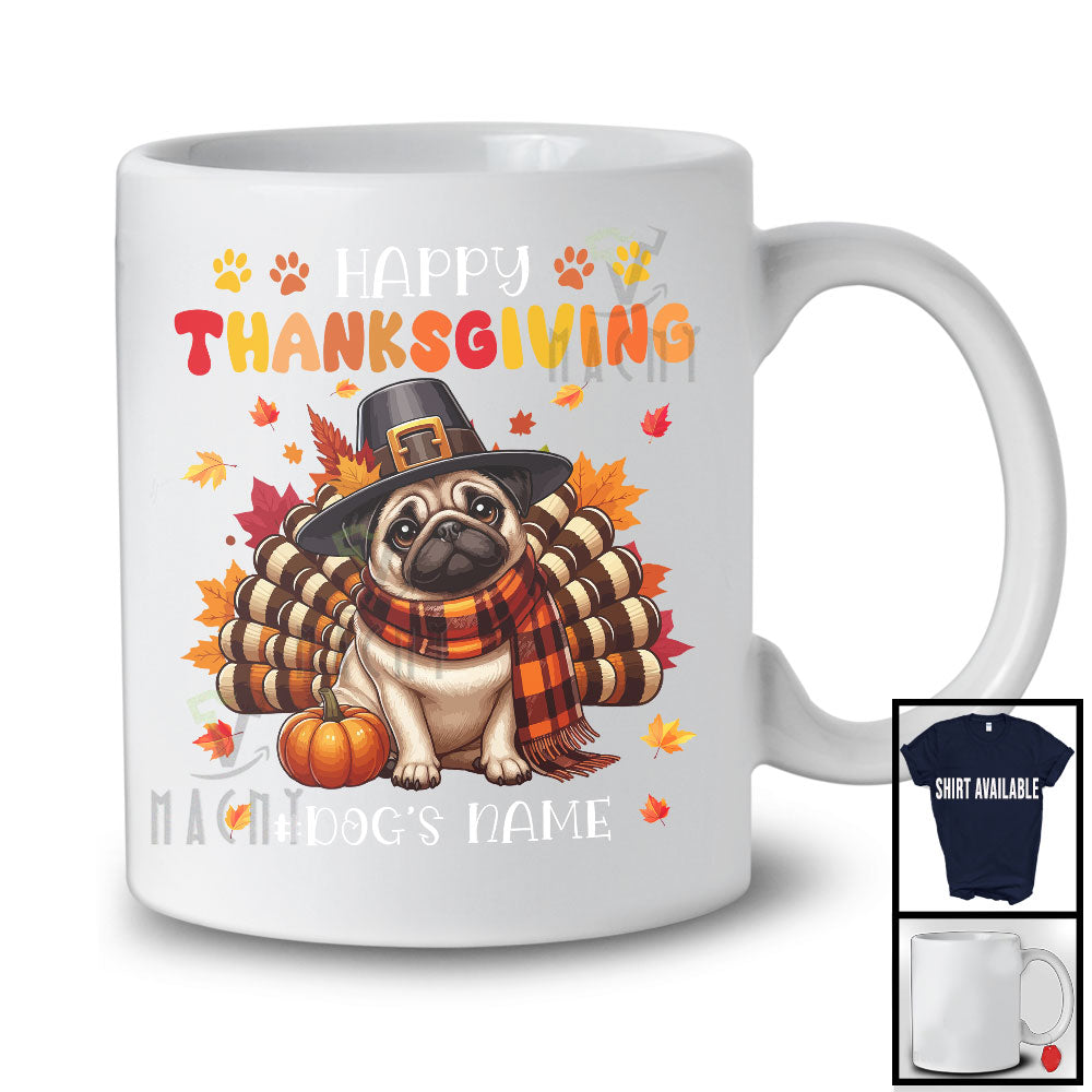 This Personalized Happy Thanksgiving; Amazing Custom Name Turkey Pug; Fall Leaves T-Shirt is great idea gift for your family, friends in this birthday, christmas, mother's day, father's day, patrick's day or any holiday.