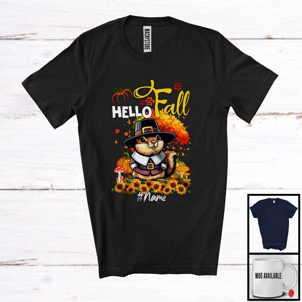 Personalized Hello Fall; Lovely Thanksgiving Tree Pilgrim Gopher; Custom Name Animal Lover T-Shirt