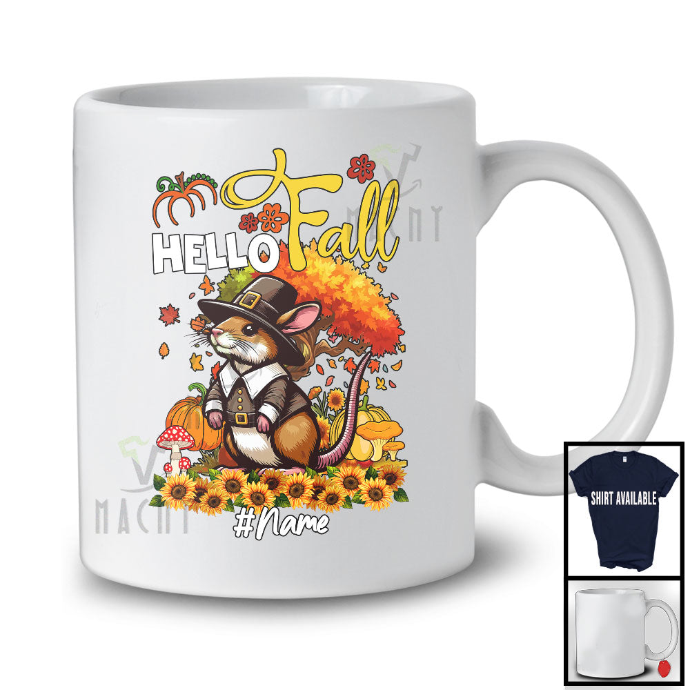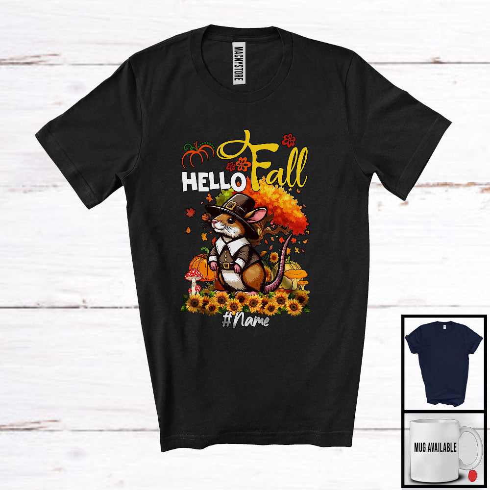 Personalized Hello Fall; Lovely Thanksgiving Tree Pilgrim Kangaroo Rat; Custom Name Animal Lover T-Shirt