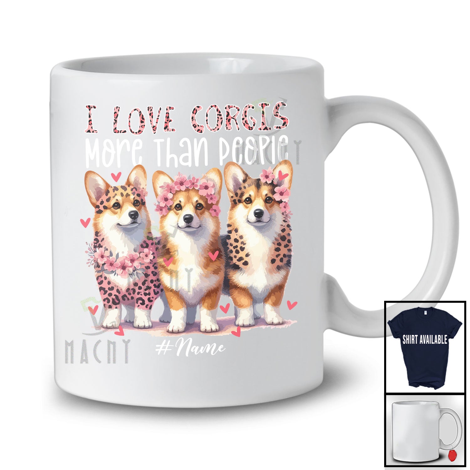 new MacnyStore - Personalized I Love Corgis More Than People; Floral Mother's Day Leopard Custom Name Owner T-Shirt – Macnystore