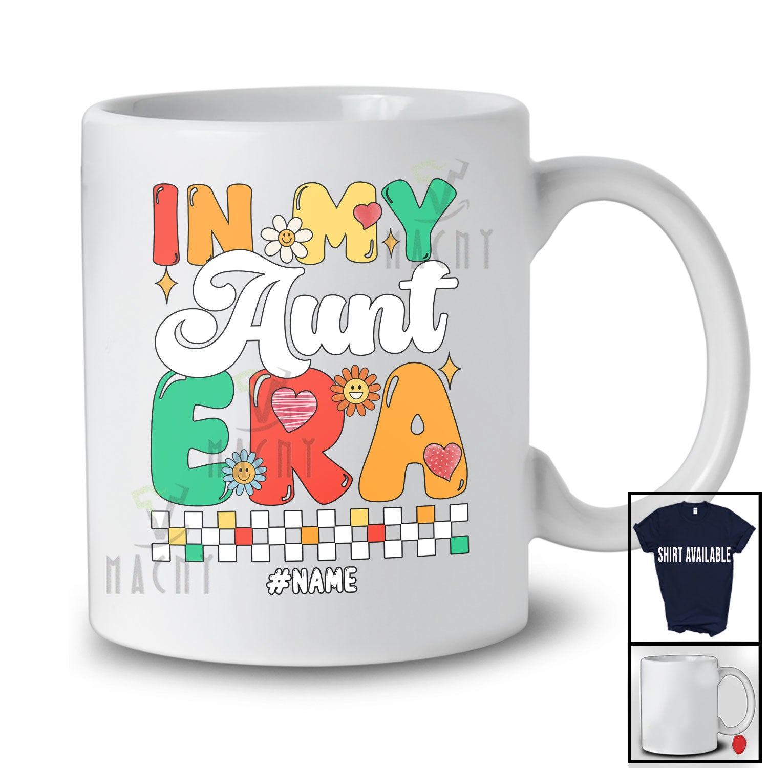• Personalized In My Aunt Era; Adorable Mother's Day Groovy Retro; Custom Name Family T-Shirt. This cotton t-shirt is a durable staple product with a classic fit. One of the most popular items, it has a relaxed style made for everyday and casual wear.
