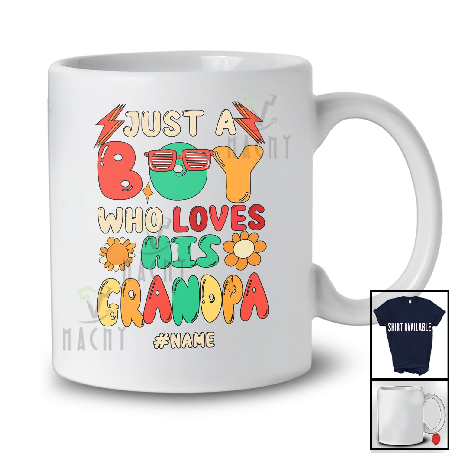 • Personalized Just A Boy Who Loves His Grandpa; Lovely Father's Day Flowers; Custom Name Family T-Shirt. This cotton t-shirt is a durable staple product with a classic fit. One of the most popular items, it has a relaxed style made for everyday and casual wear.