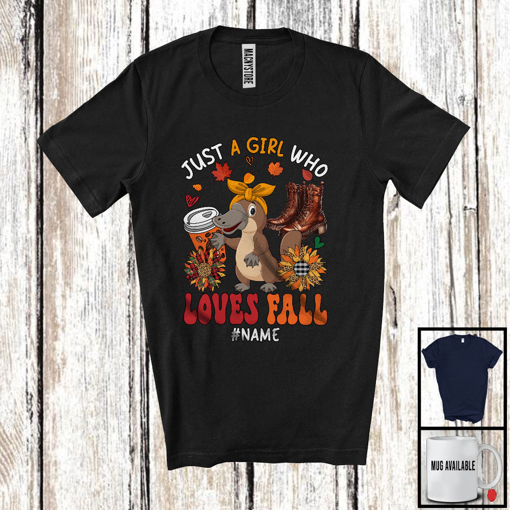 • Personalized Just A Girl Who Loves Fall; Adorable Custom Name Platypus; Fall Plaid Sunflowers T-Shirt. This cotton t-shirt is a durable staple product with a classic fit. One of the most popular items, it has a relaxed style made for everyday and casual wear.