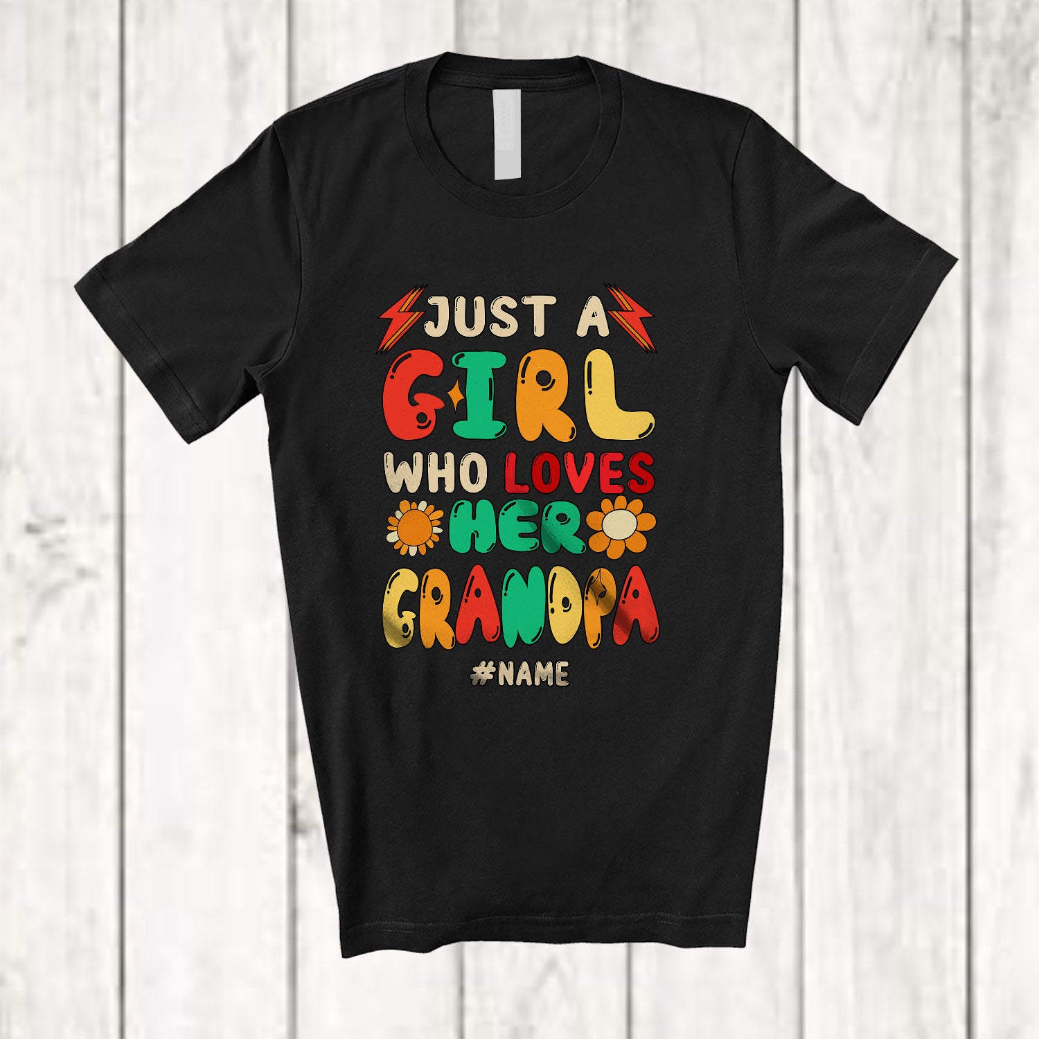 This Personalized Just A Girl Who Loves Her Grandpa; Lovely Father's Day Flowers; Custom Name Family T-Shirt is great idea gift for your family, friends in this birthday, christmas, mother's day, father's day, patrick's day or any holiday.