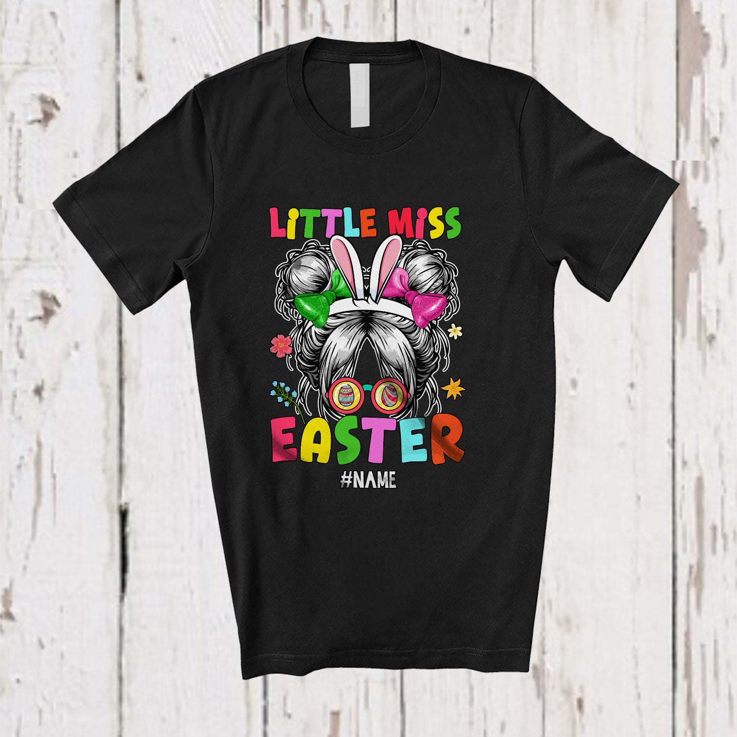 Personalized Little Miss Easter; Lovely Custom Name Messy Bun Hair Bunny; Family T-Shirt