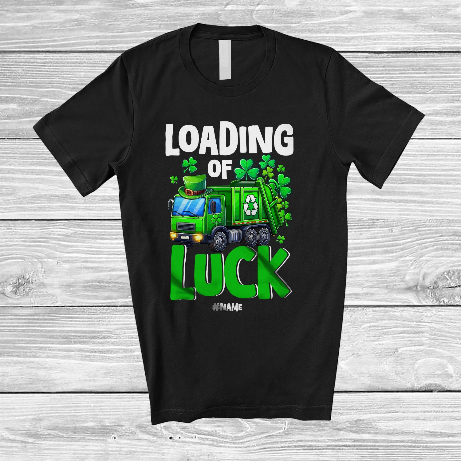 Personalized Loading Of Luck; Fantastic St. Patrick's Day Custom Name Garbage Driver; Shamrock T-Shirt. This cotton t-shirt is a durable staple product with a classic fit. One of the most popular items, it has a relaxed style made for everyday and casual wear.