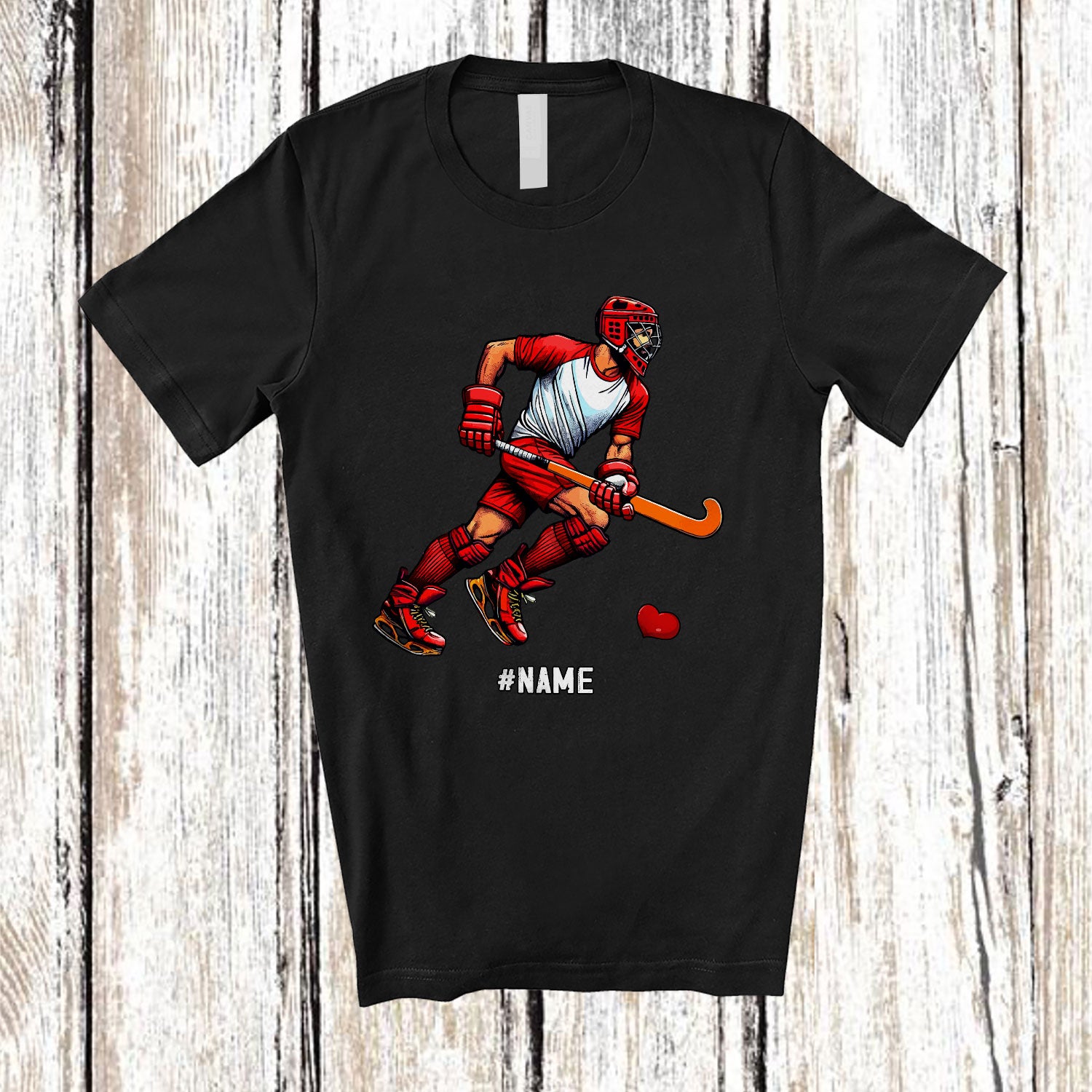Personalized Men Playing Ice Hockey Hit Heart Away; Joyful Valentine Cusotm Name Sport Player T-Shirt. This cotton t-shirt is a durable staple product with a classic fit. One of the most popular items, it has a relaxed style made for everyday and casual wear.