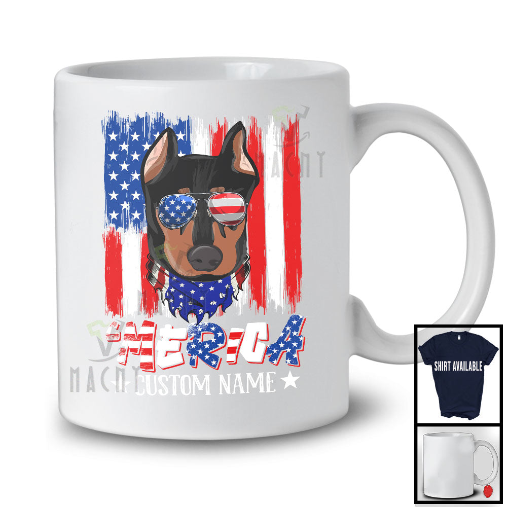 Personalized 'Merica, Proud 4th Of July Custom Name Doberman Owner, USA Flag Patriotic T-Shirt